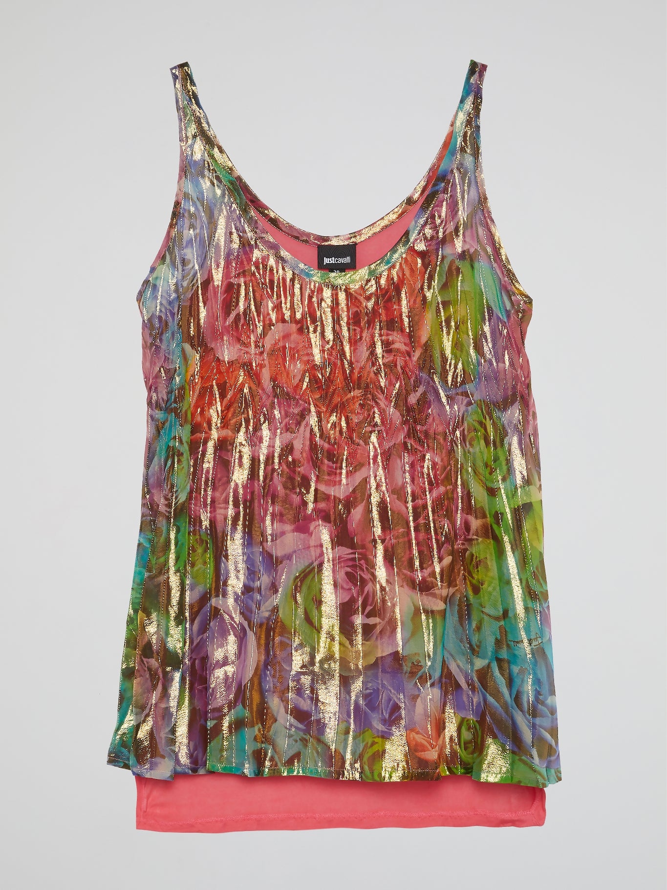 Step into the garden of elegance with the Rose Print Pleated Sleeveless Top from Just Cavalli. The delicate pleats and soft pastel hues create a blooming design that will make you look and feel like a graceful flower. Perfect for any occasion, this top is sure to turn heads and inspire compliments.