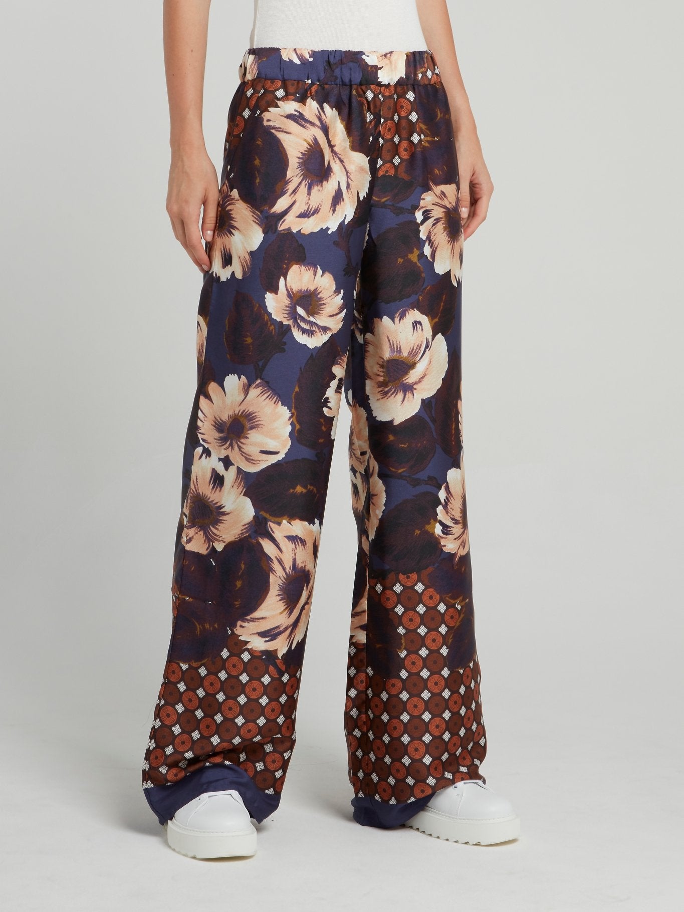 Широкие брюки в горошек с цветочным принтом