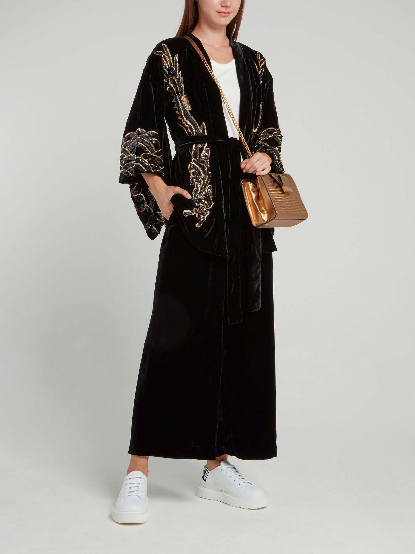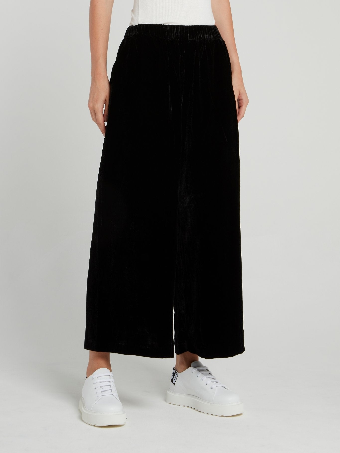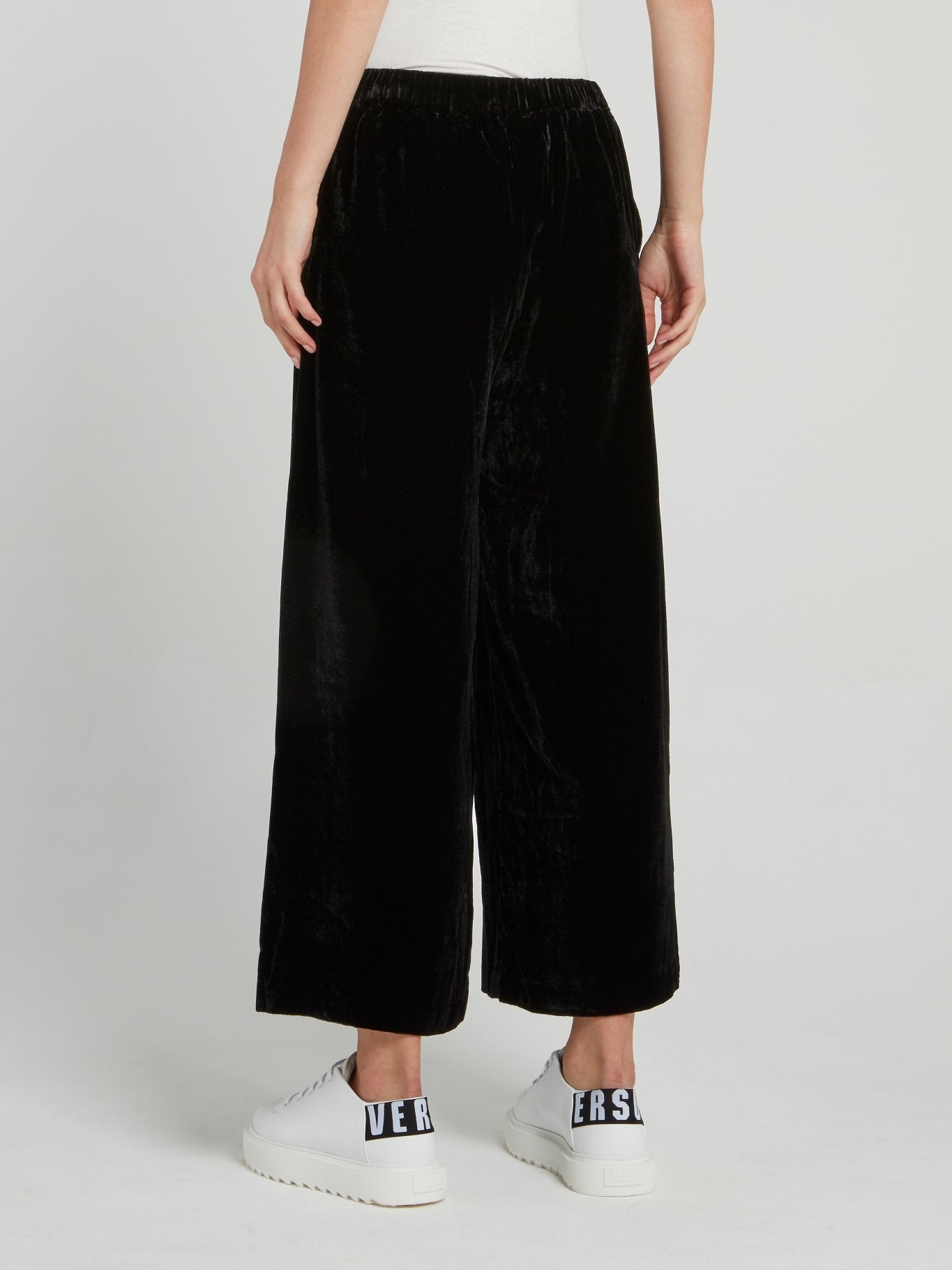 Черные брюки палаццо из бархата