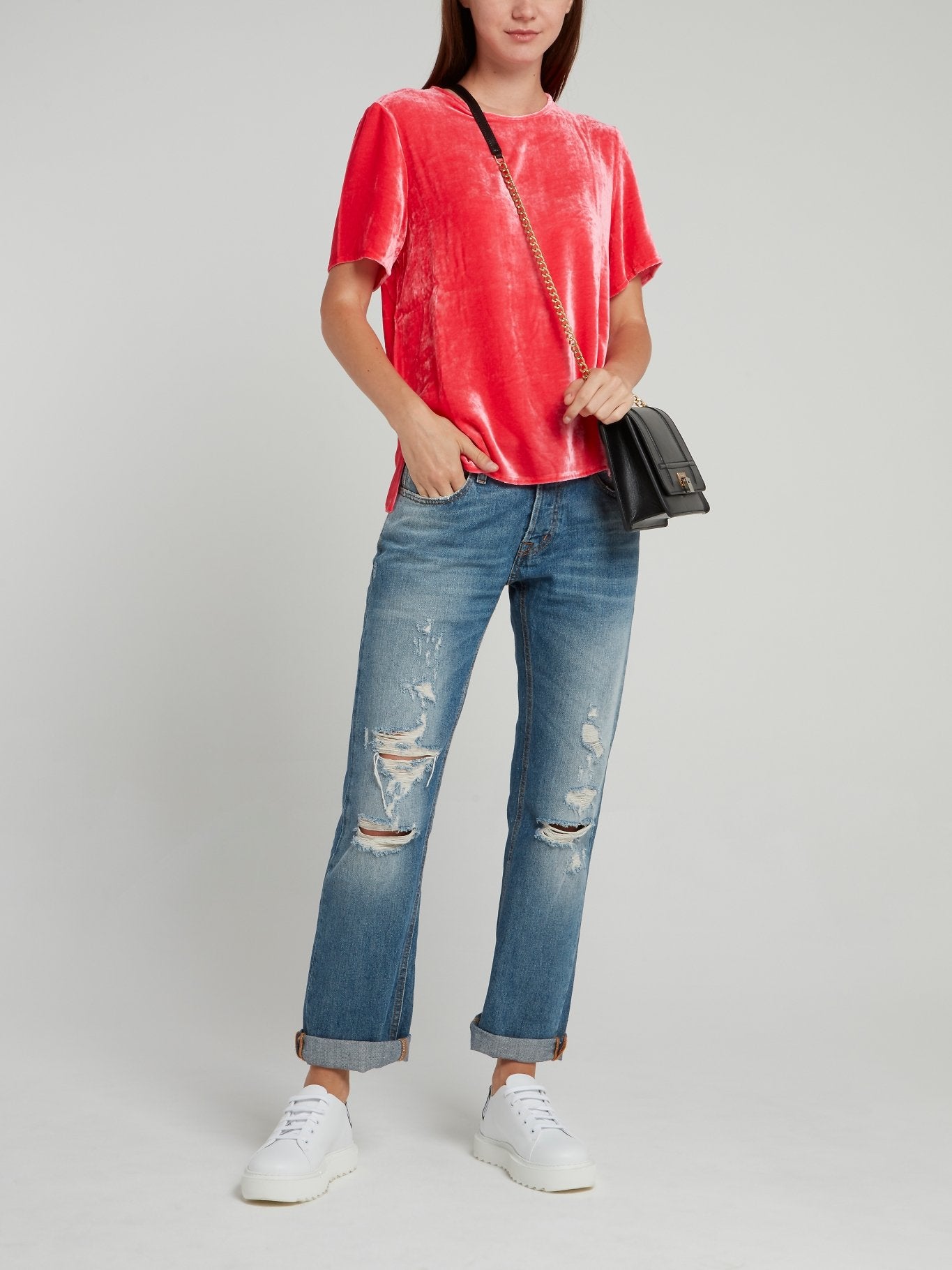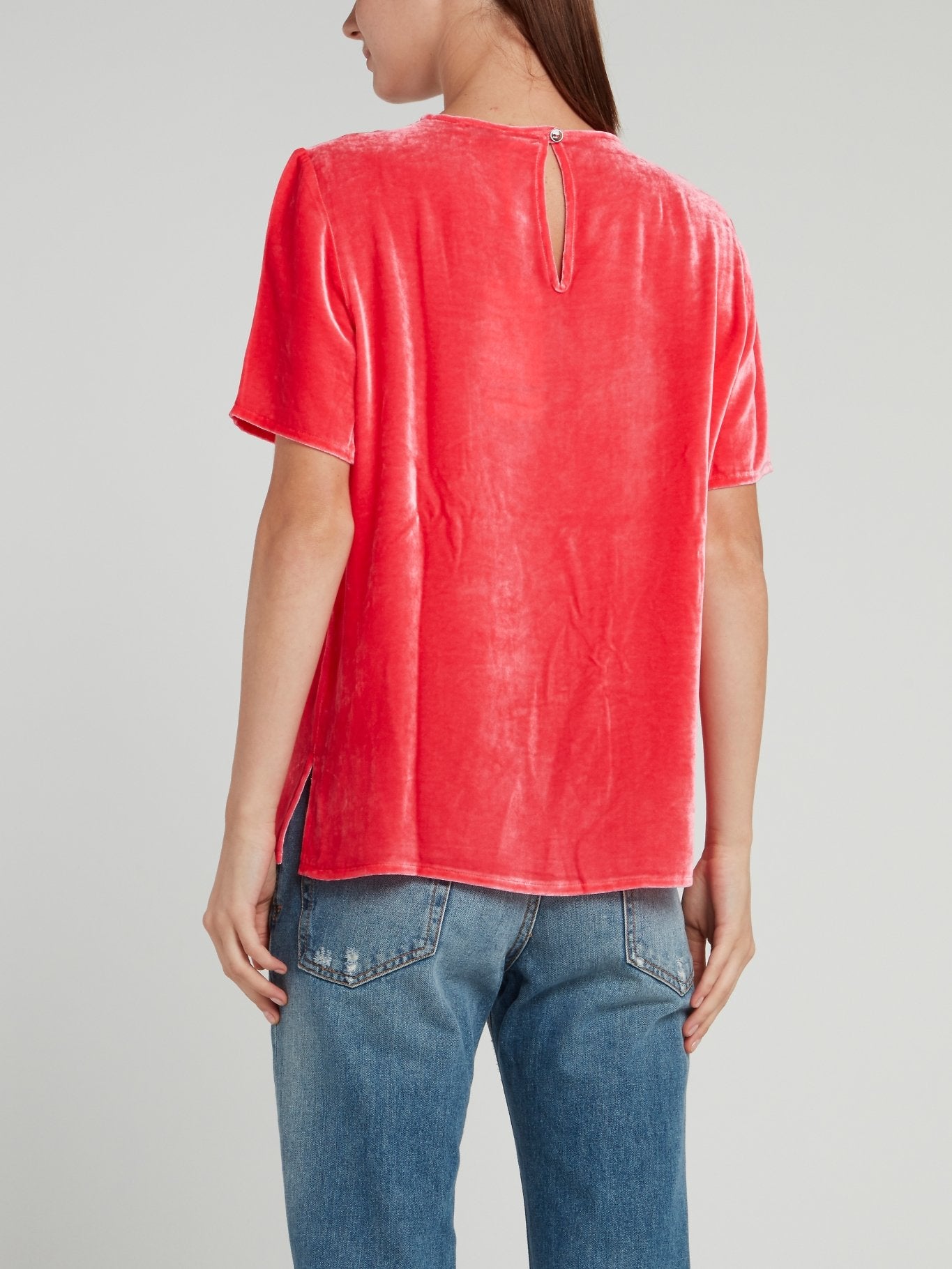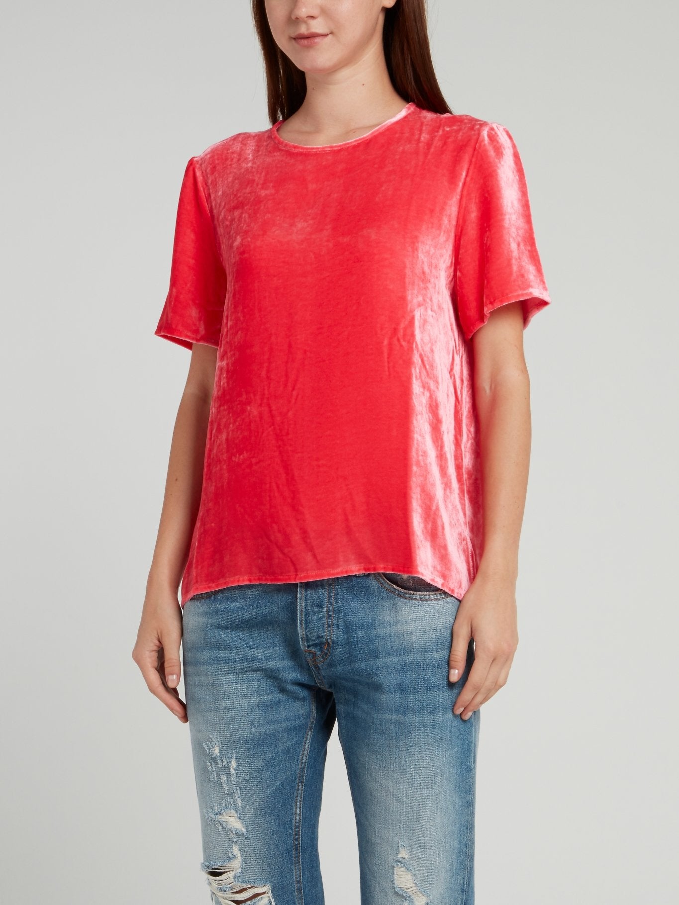Коралловый бархатный топ с вырезом "замочная скважина" на спине