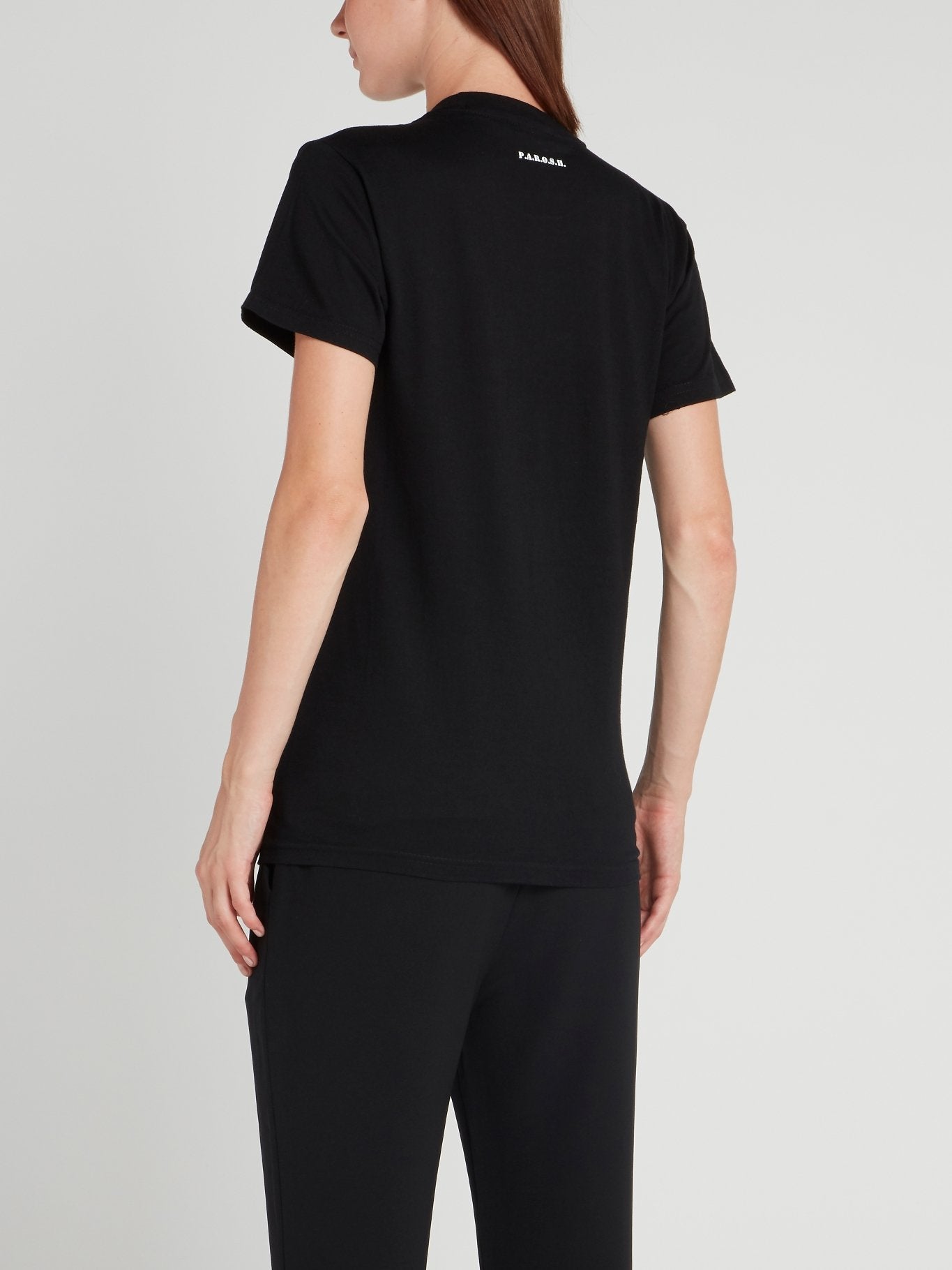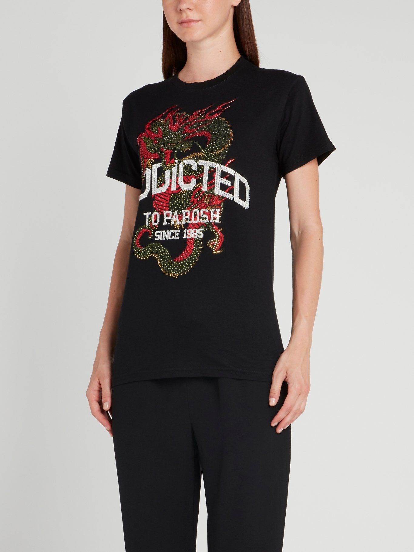 Черная футболка с изображением дракона и стразами