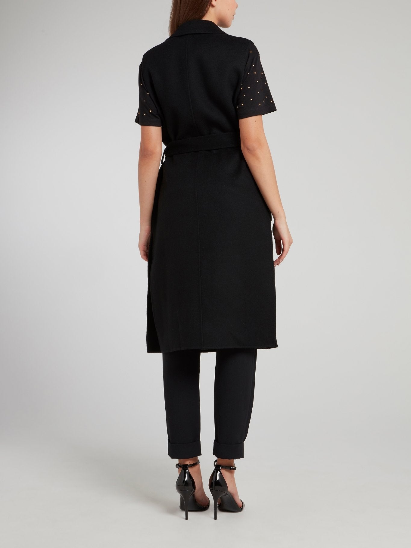 Черный длинный жилет с поясом