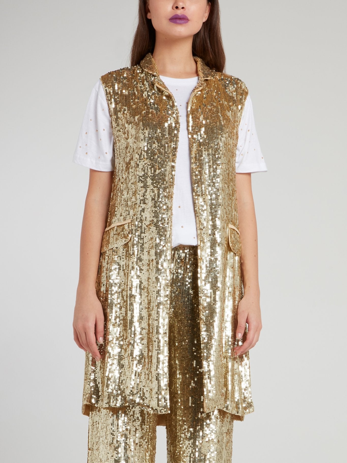 Золотой длинный жилет с пайетками