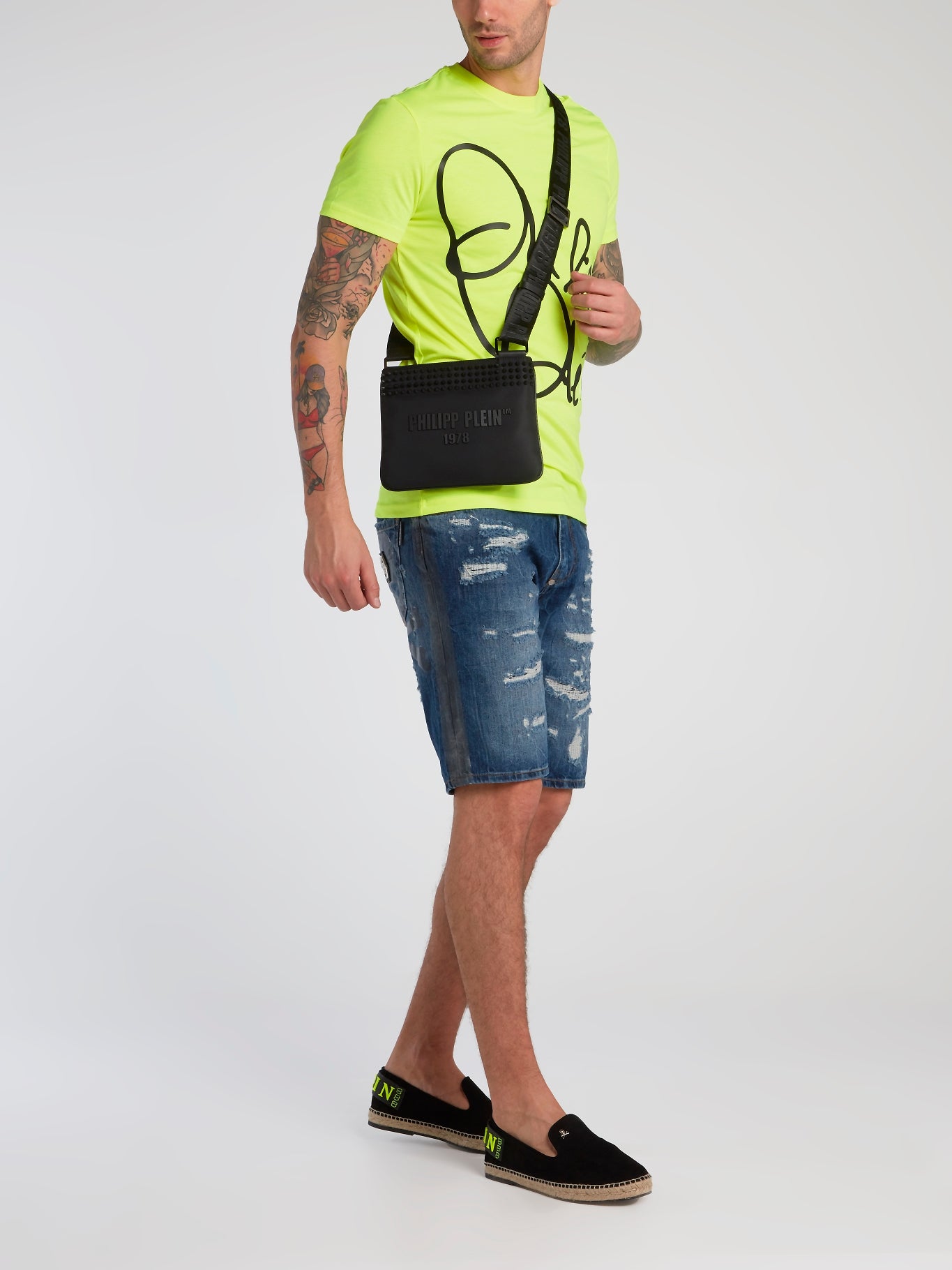 Looking for a bag that truly embodies the punk-rock spirit? Then look no further than the PP1978 Black Spike Studded Crossbody Bag from Philipp Plein! With its sleek black design and eye-catching silver studs and spikes, this bag is the perfect accessory for any rebel with a cause. Made from high-quality materials and expertly crafted to ensure maximum durability, this bag is both functional and fashionable. With plenty of space for all your essentials, it's the ultimate choice for anyone looking to make a bold statement with their style. So why wait? Order your PP1978 Black Spike Studded Crossbody Bag today and start turning heads wherever you go!