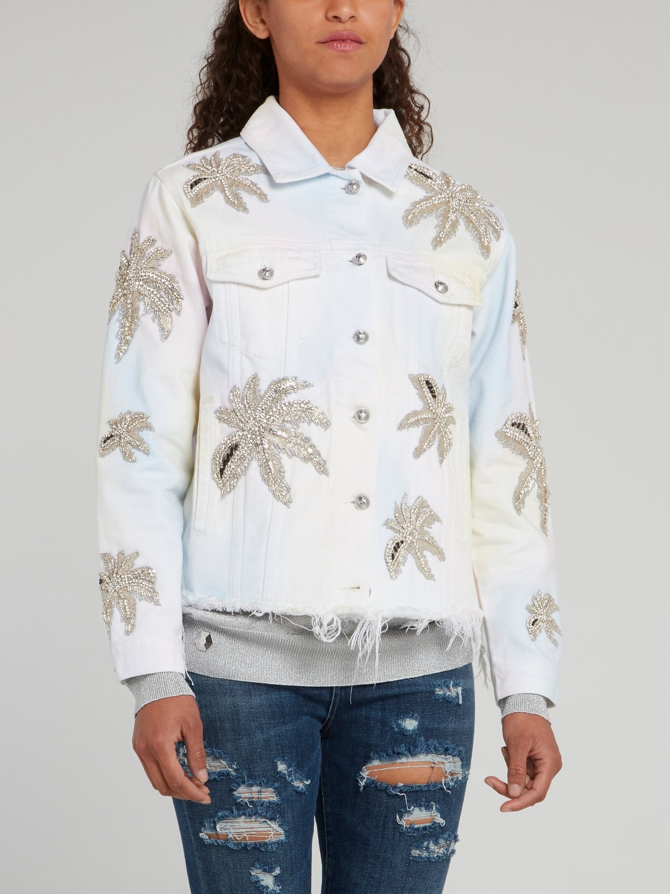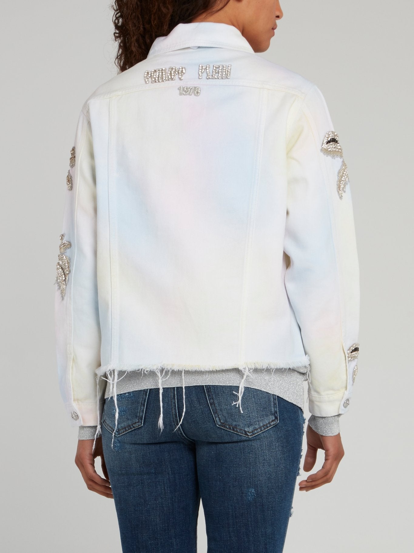 Джинсовая куртка с необработанным краем и стразами Aloha Plein