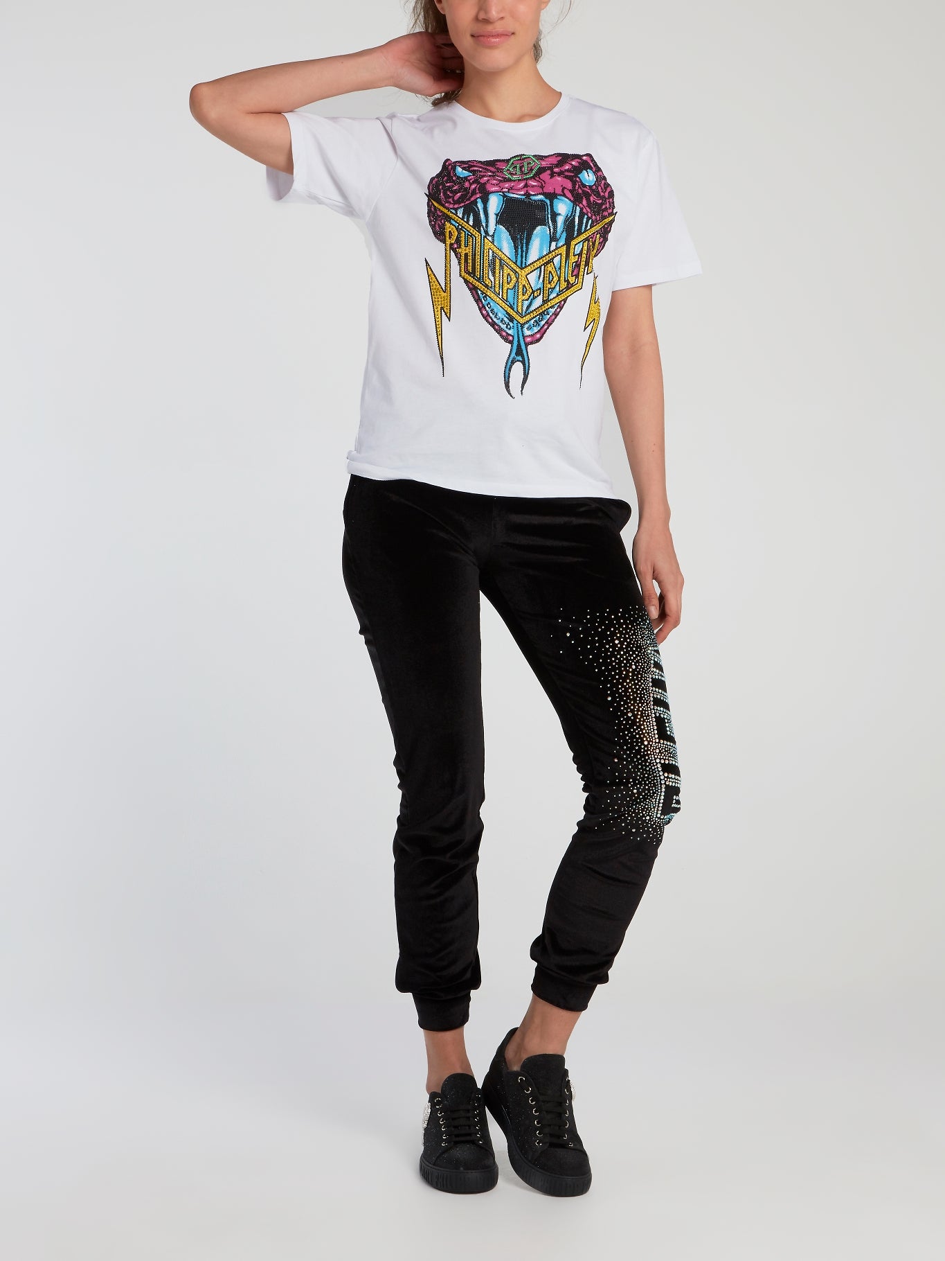 Looking for comfort and style in your running gear? Look no further than Plein Star Black Running Trousers! Made with high-quality materials and designed with the fashion-forward touch of Philipp Plein, these trousers will keep you looking and feeling great for all your workouts. So why wait? Grab a pair and start turning heads on your runs today!