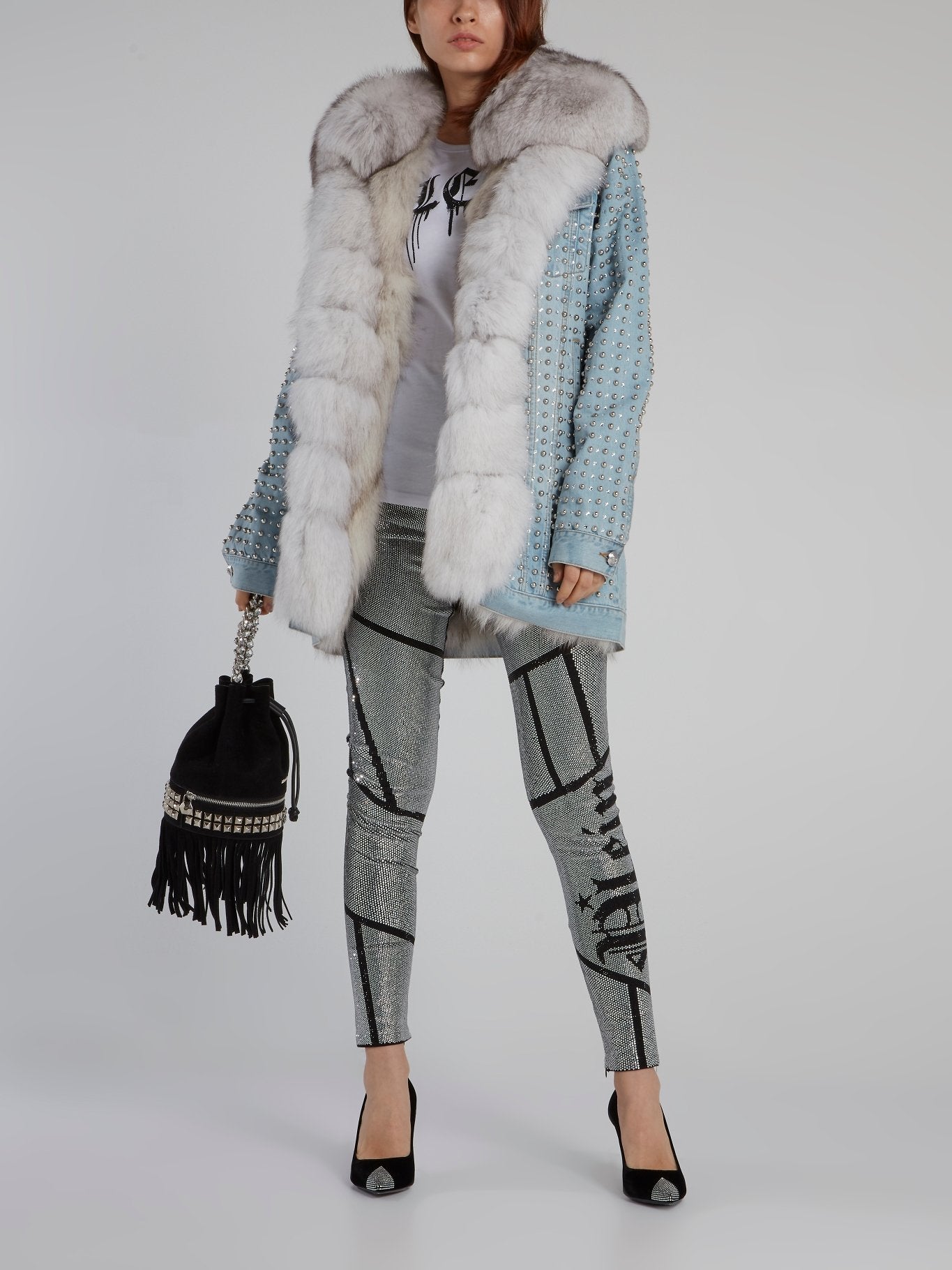 Introducing the ultimate statement piece for every fashion-forward diva out there - the Metallic High Waist Studded Leggings by Philipp Plein! Crafted with utmost precision and utmost attention to detail, these leggings are designed to elevate your style game to the next level. The high waist design, metallic finish and stunning stud embellishments make sure you get the spotlight wherever you go.