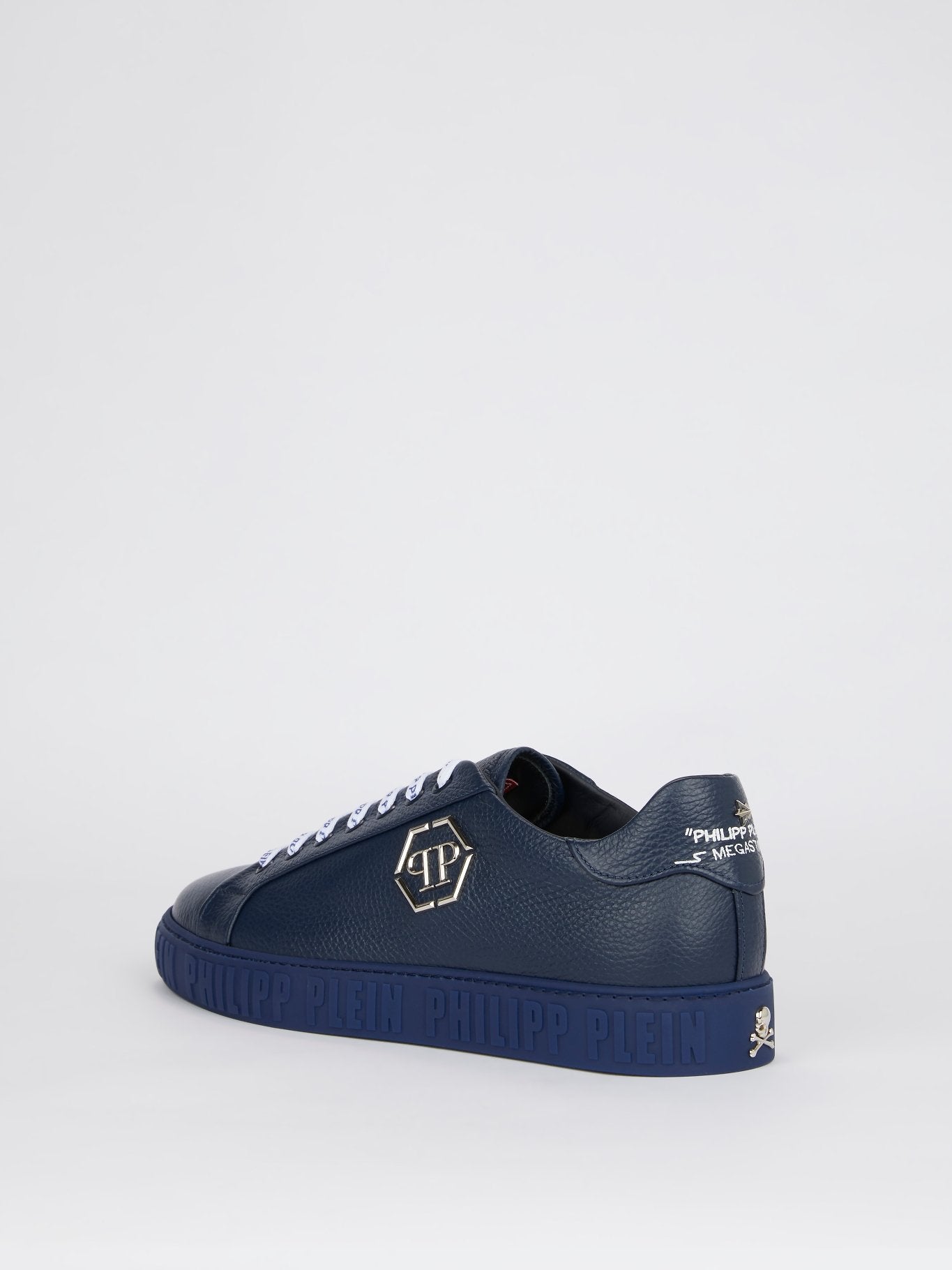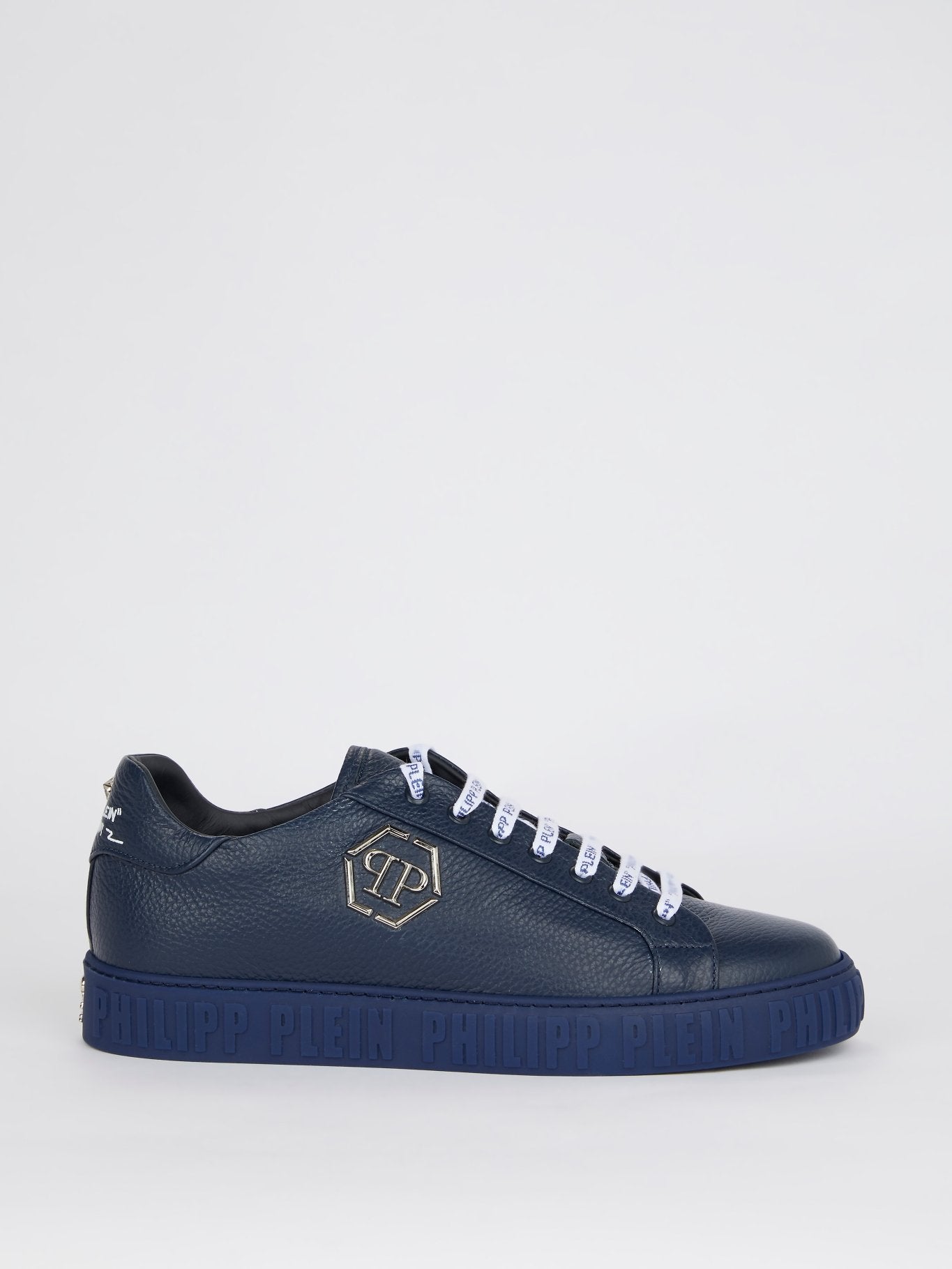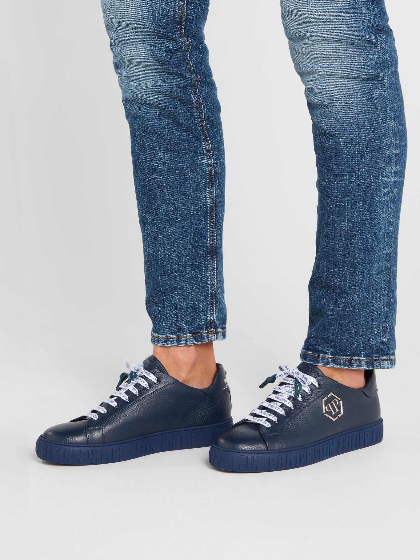 Темно-синие кожаные кроссовки на шнуровке с логотипом