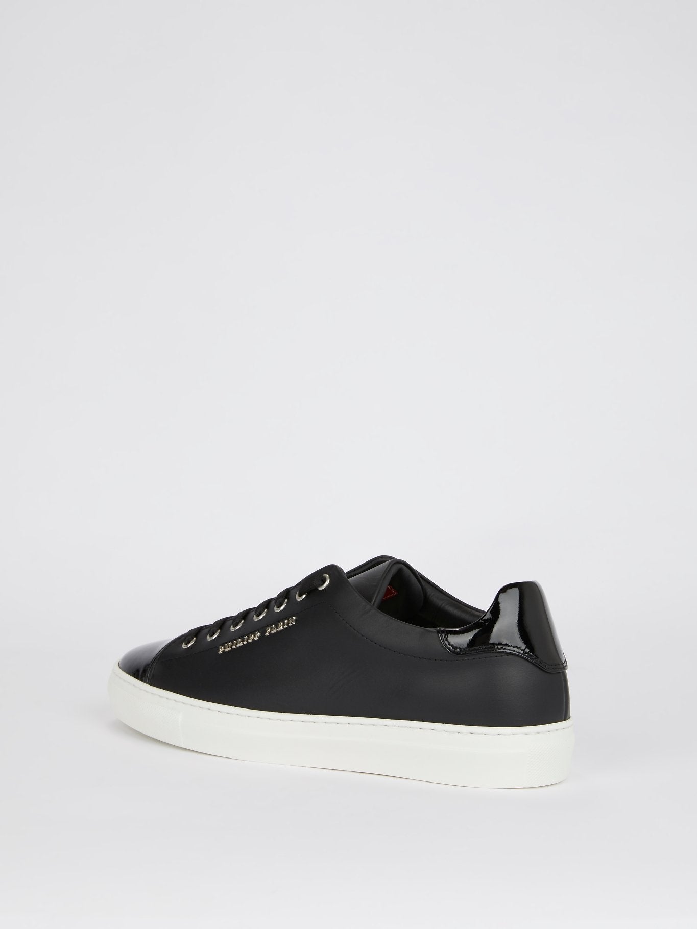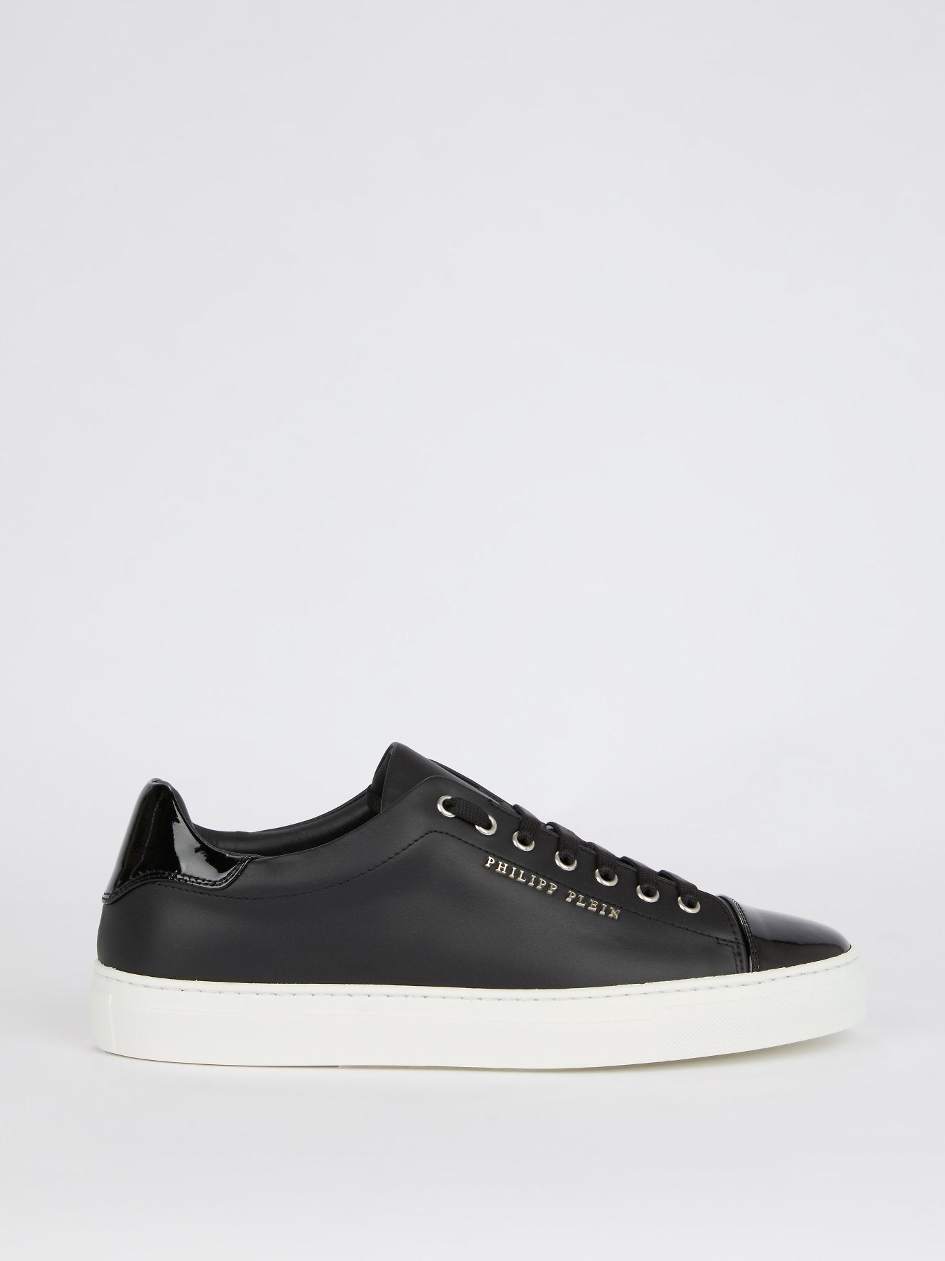 Черные кожаные кроссовки с лакированными вставками на мыске и пятке