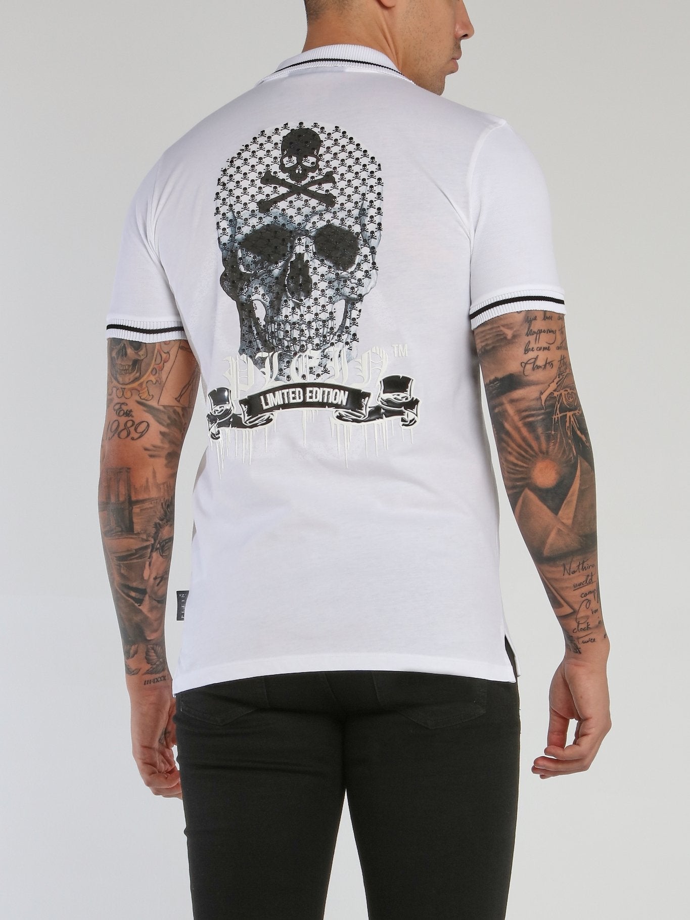 Indulge in the impeccable style of Philipp Plein with this White Ribbed Trim Polo Shirt. Made with the finest textures, this shirt offers a comfortable fit and a classic look. Featuring a bold and vibrant logo on the chest, this polo shirt is perfect for any occasion, formal or casual.