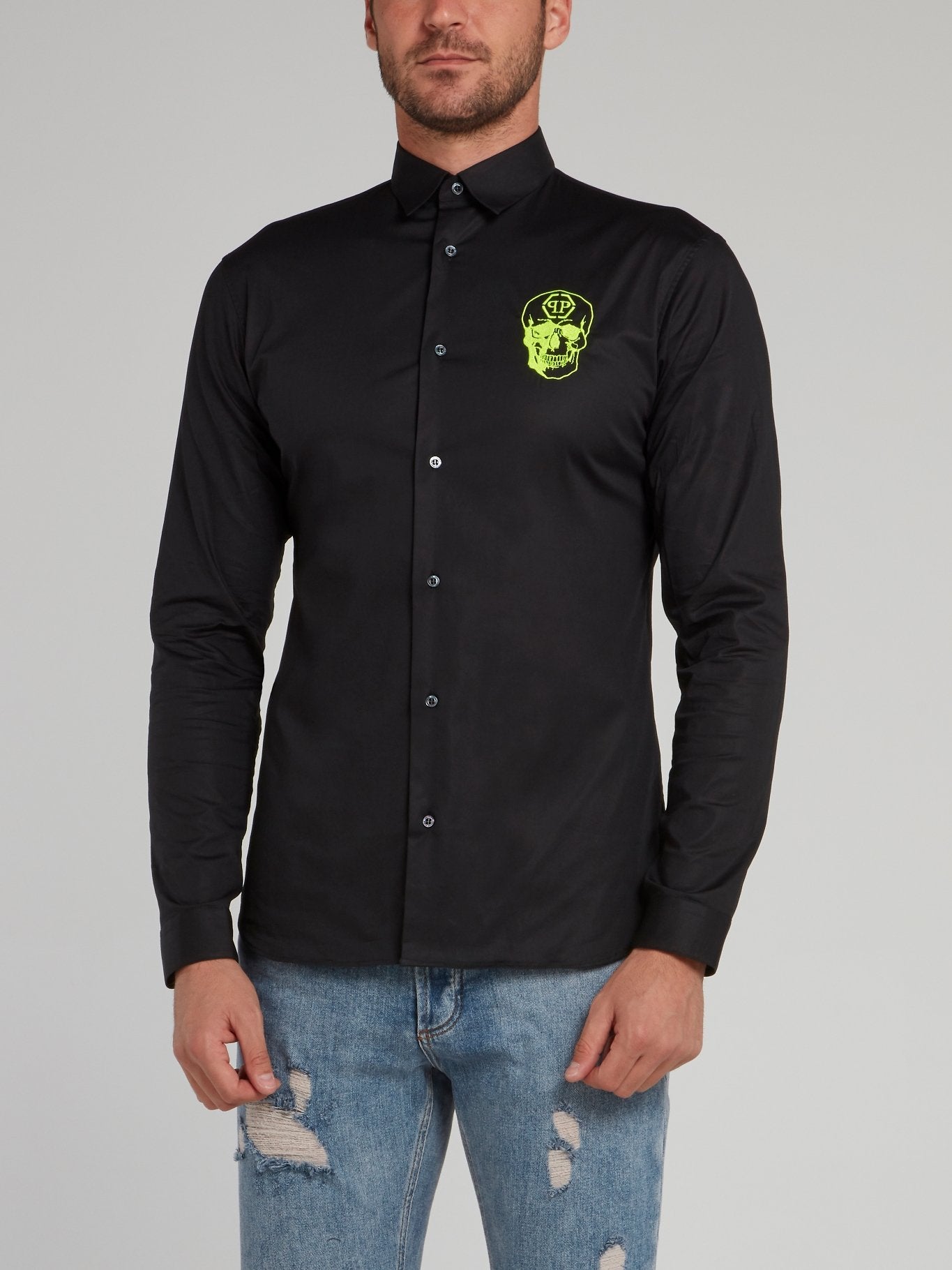 Черная рубашка с длинными рукавами и неоновым изображением черепа