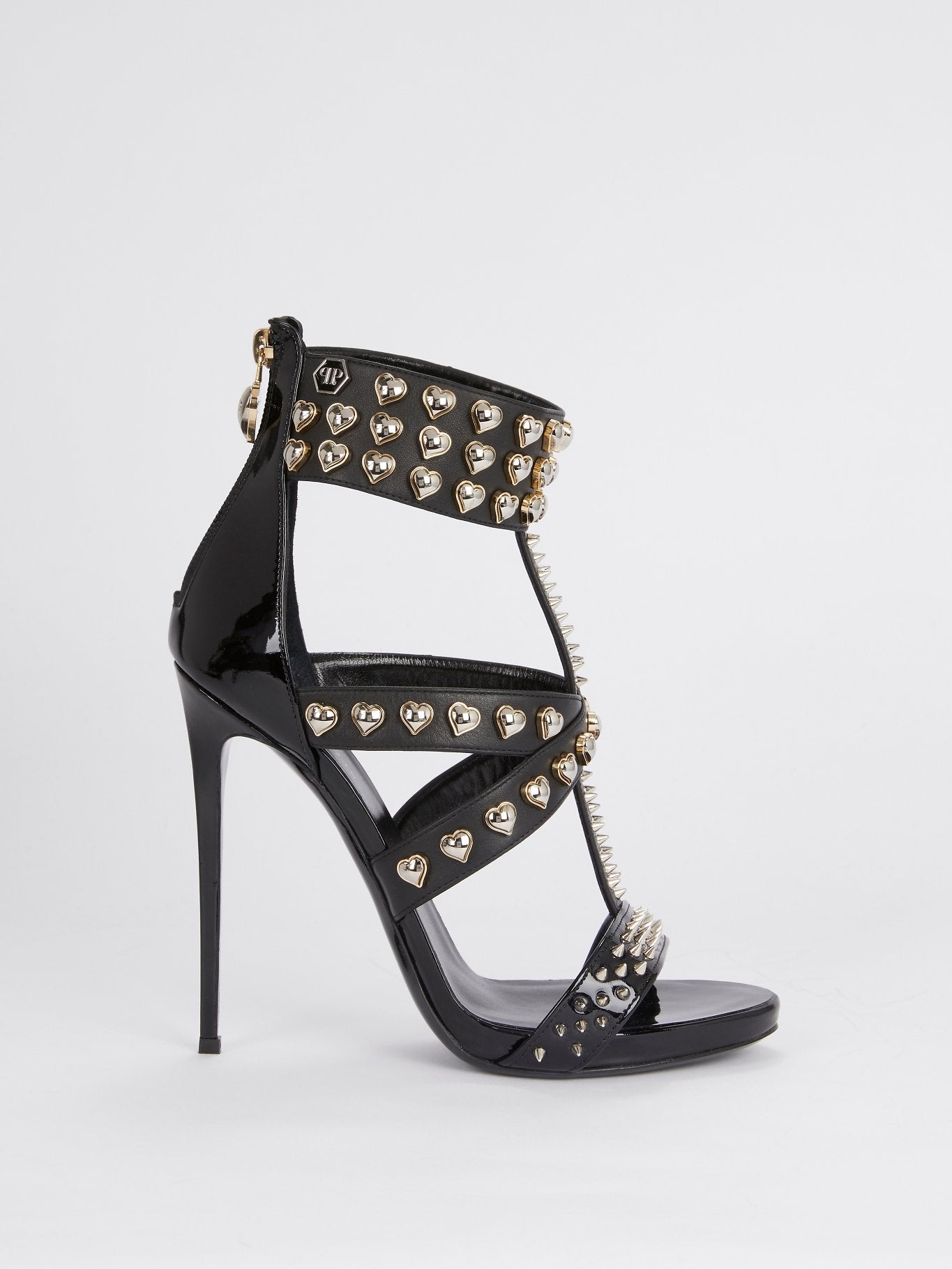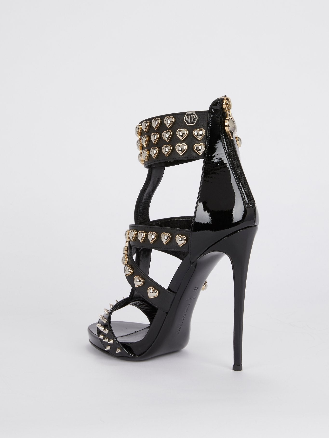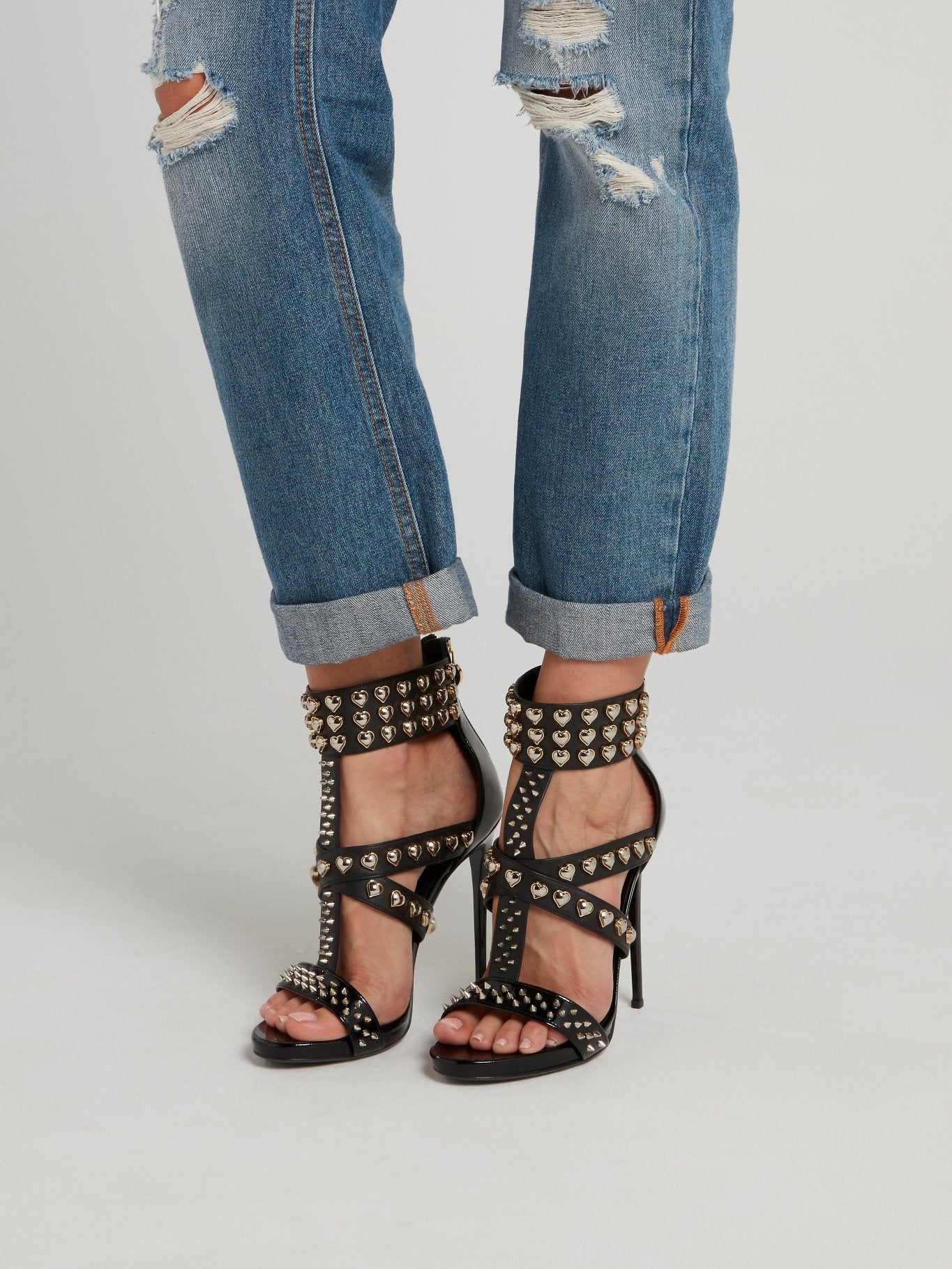 Черные босоножки с ремешками и заклепками в виде сердец