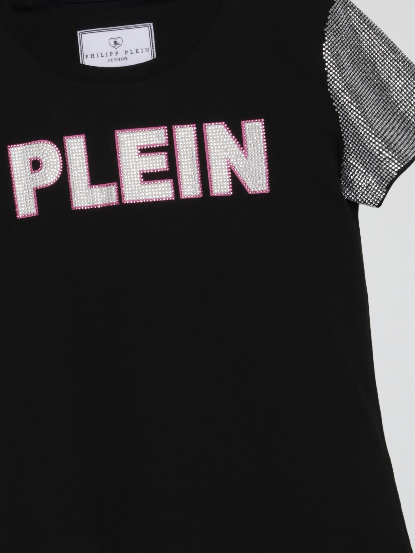 Introducing the SS Stars Round Neck T-Shirt for kids by Philipp Plein – the perfect combination of comfort and style! The bold stars design adds an element of fun and edginess to any child's wardrobe. Crafted from premium quality materials, this t-shirt guarantees long-lasting durability while keeping your child comfy and cool all day long. Your little one will never want to take it off!