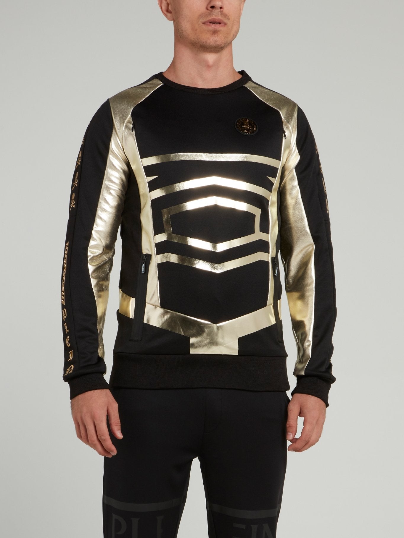 Черный свитшот с золотыми геометрическими узорами