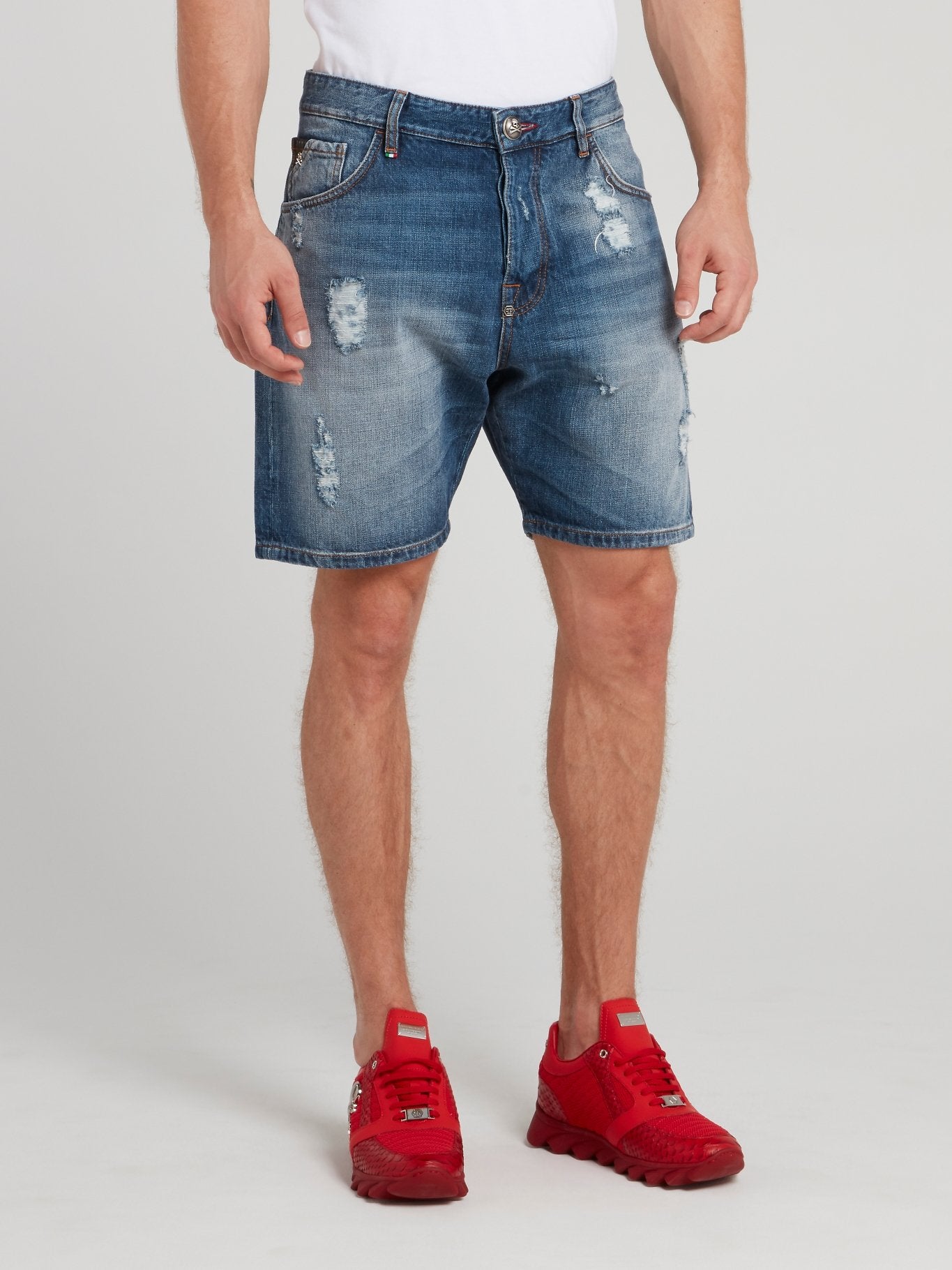 Синие бермуды с рваной отделкой