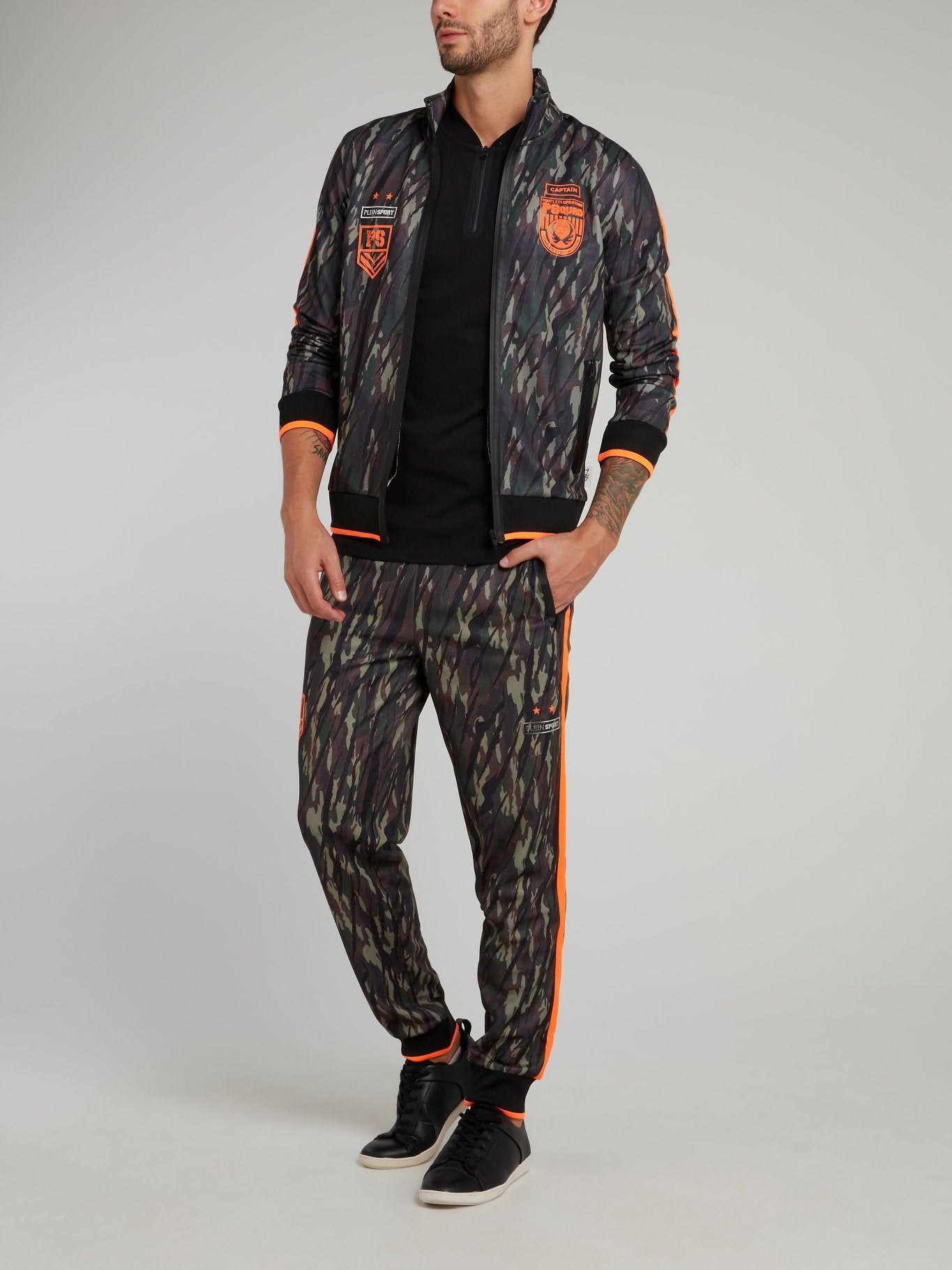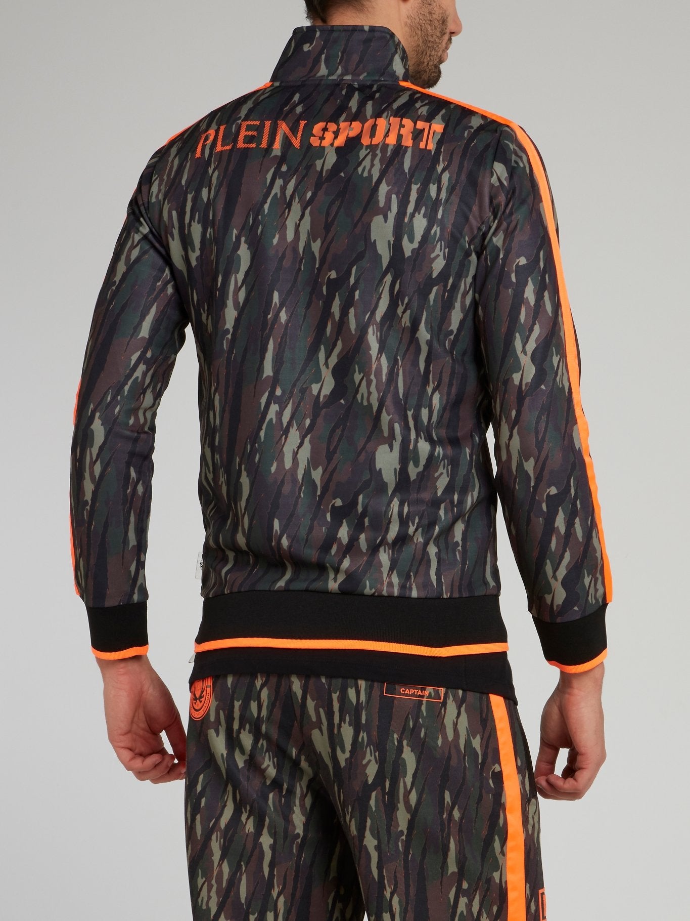 Спортивная куртка с камуфляжным принтом и высоким воротником