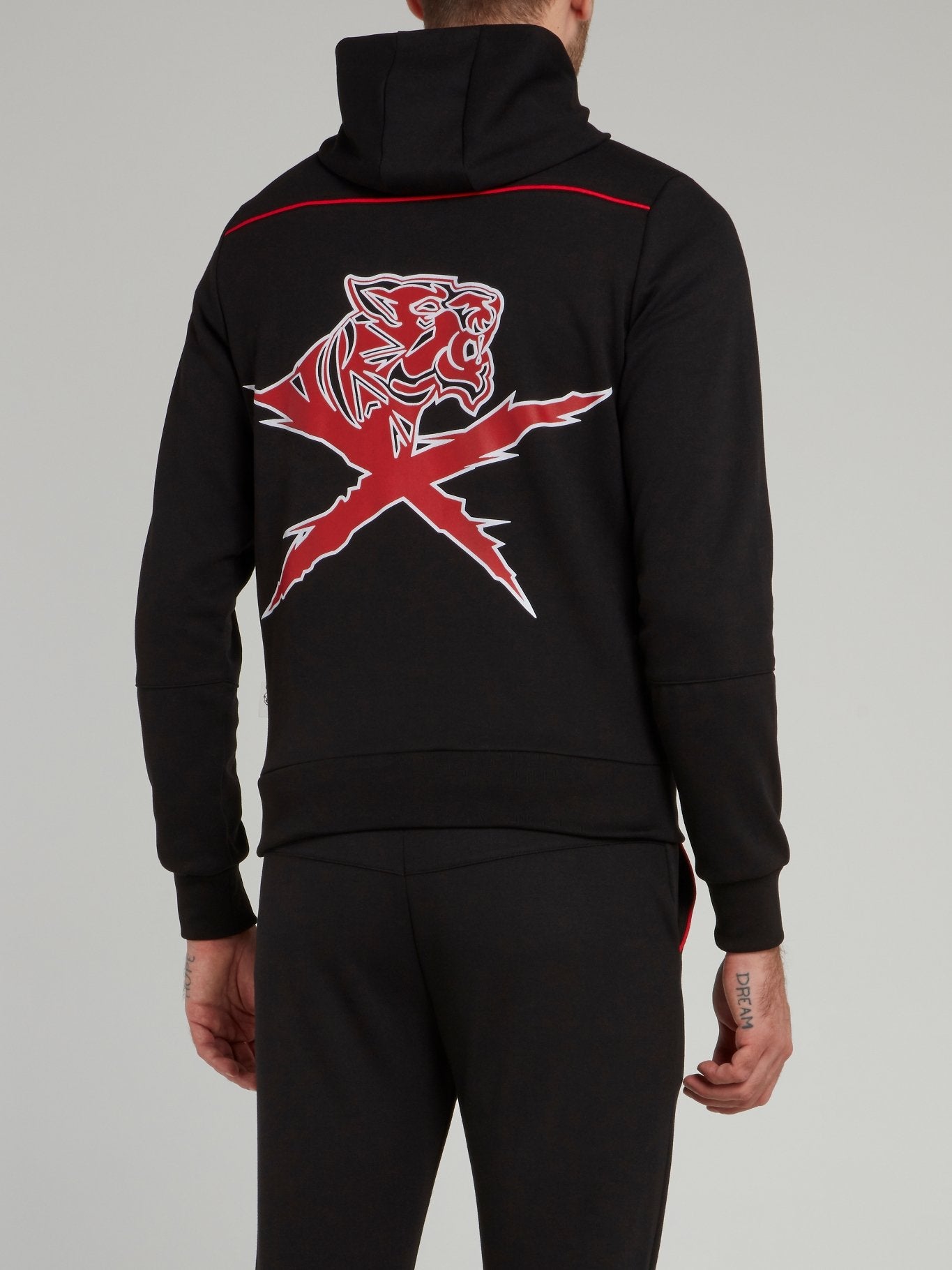 Черная толстовка с капюшоном и изображением тигра на спине