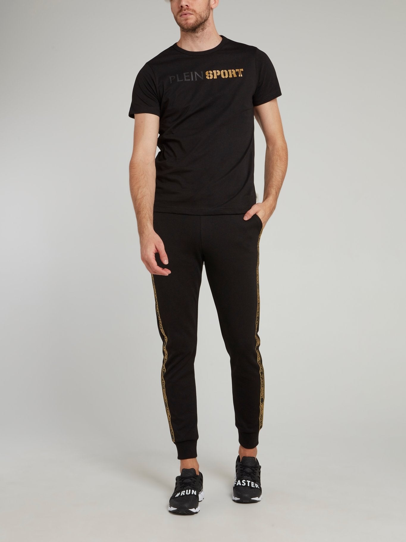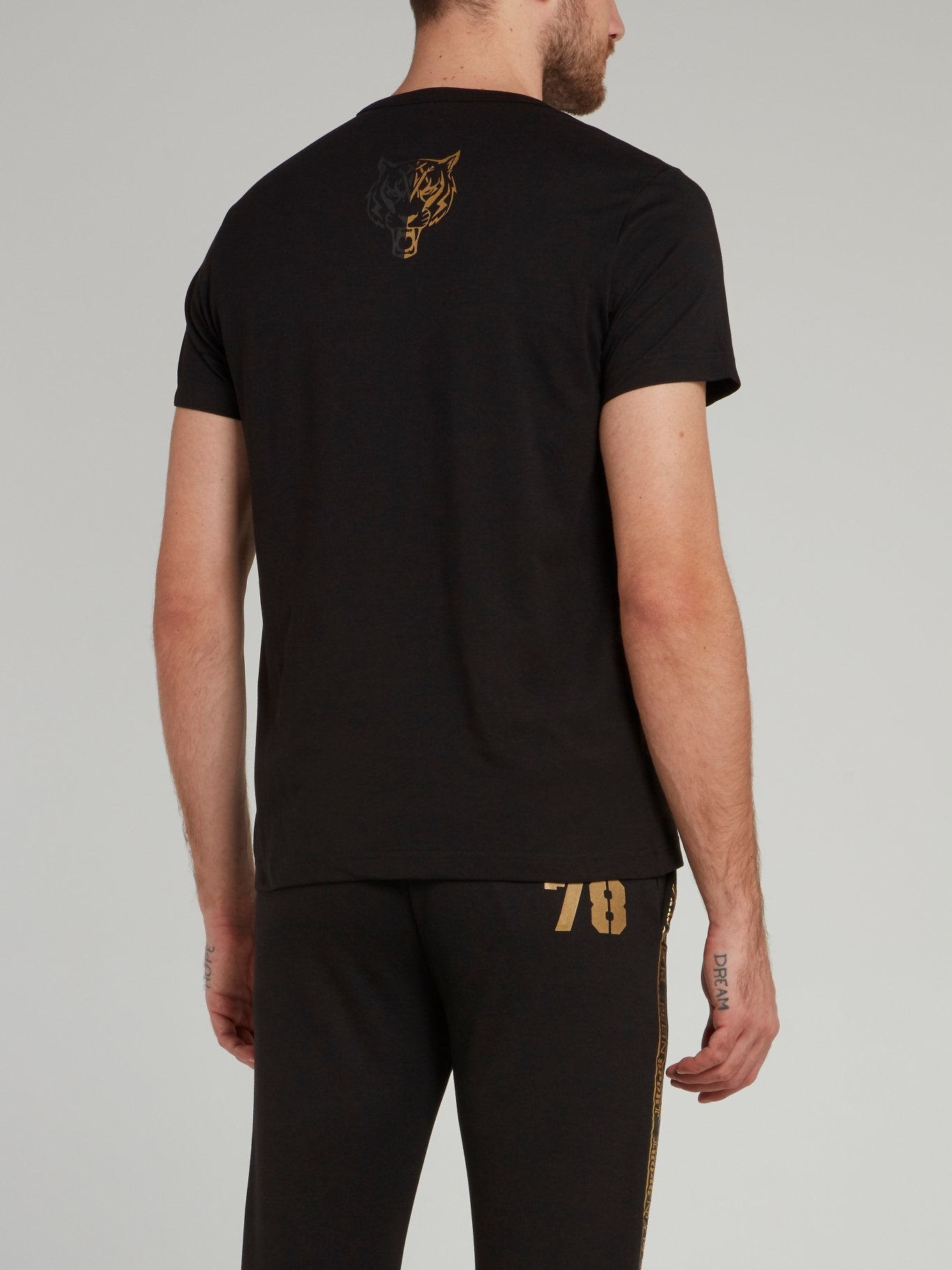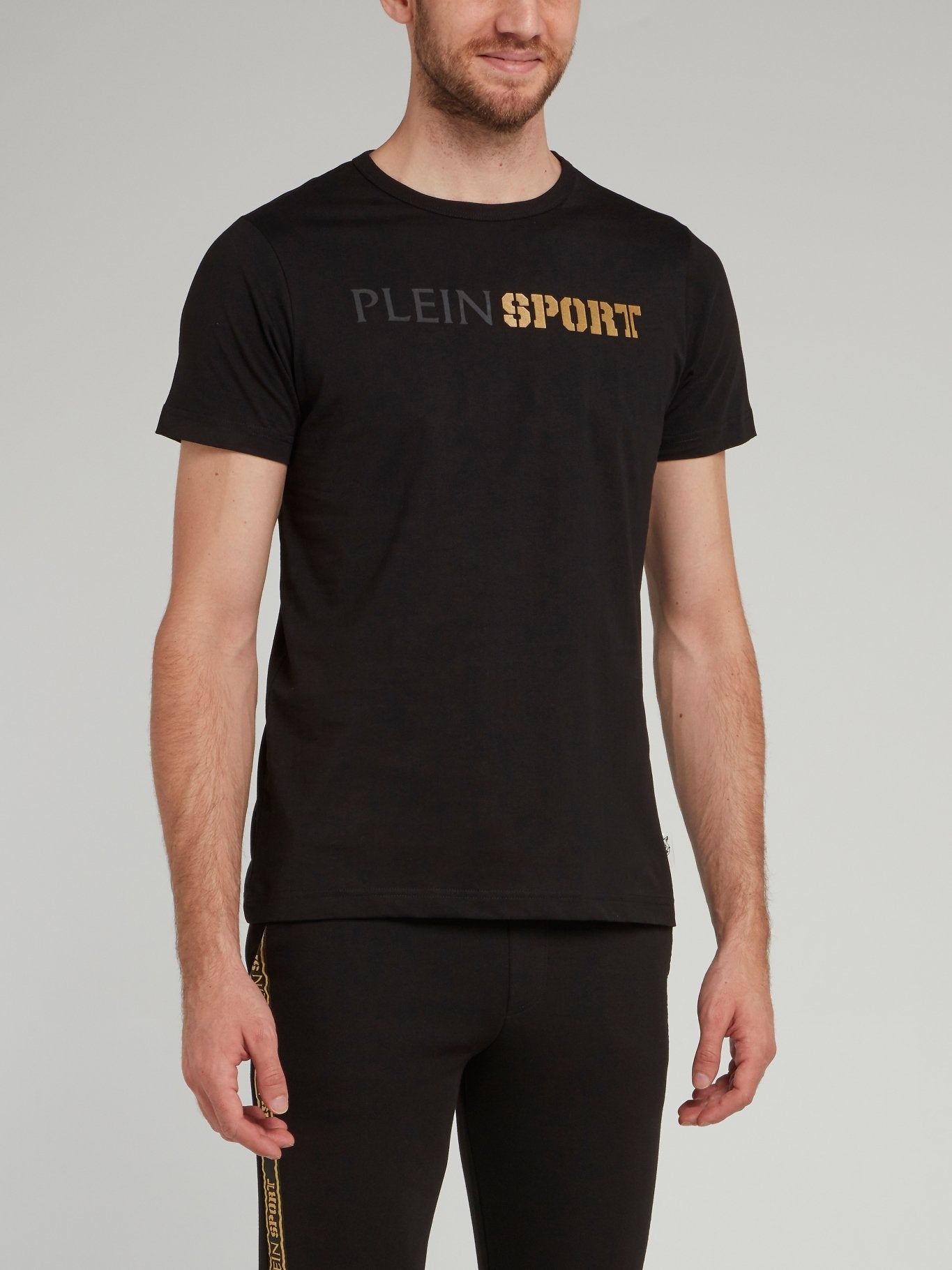 Черная хлопковая футболка с круглым вырезом и логотипом
