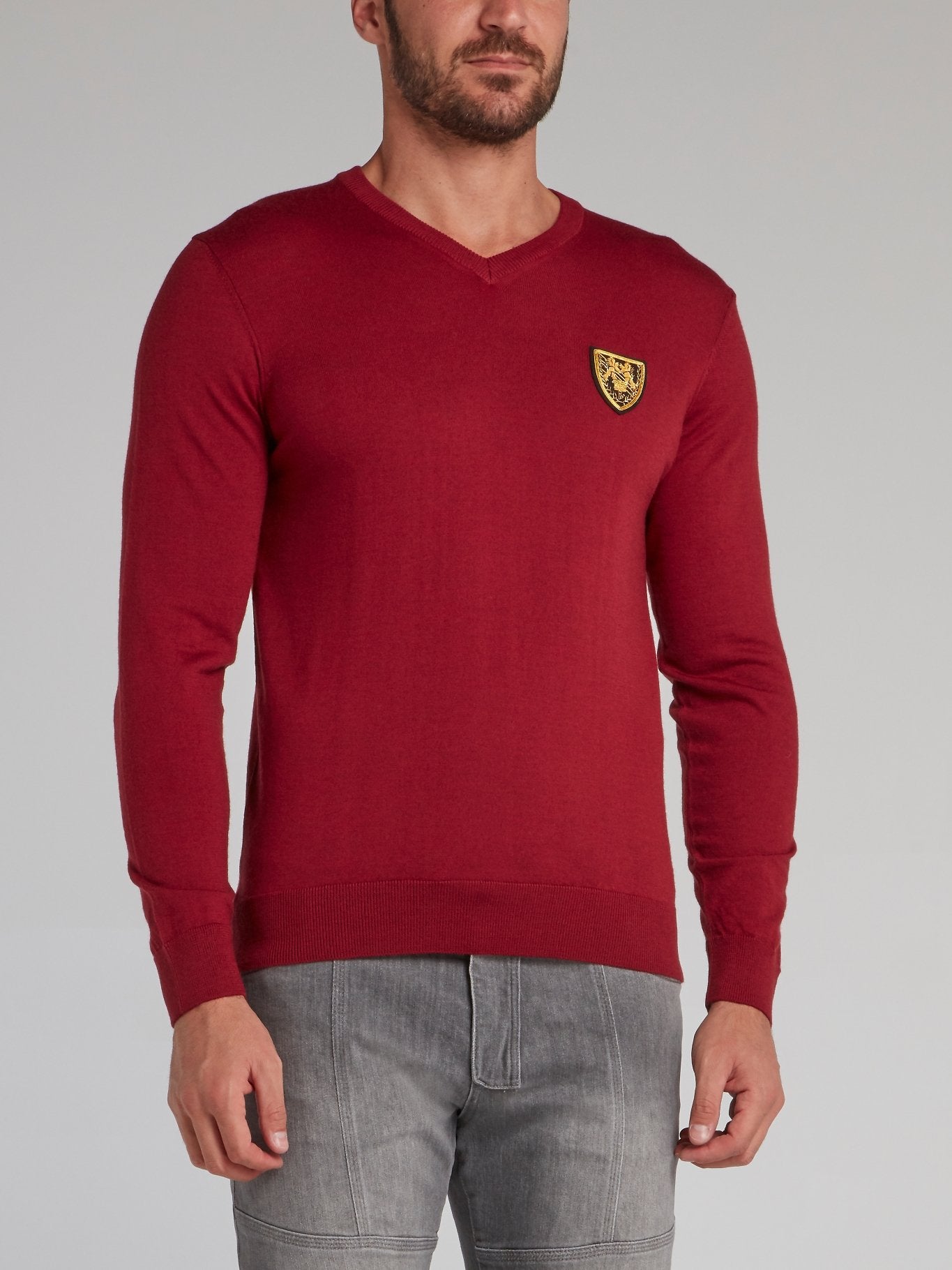Buckingham Burgundy Appliquéd V-Neck Pullover