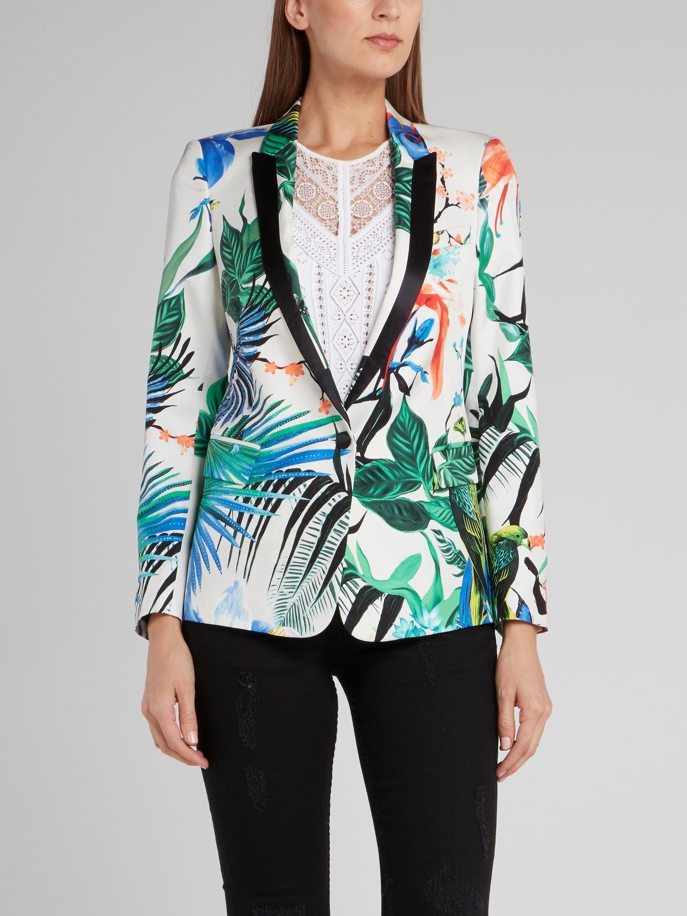 Transform your wardrobe with this stunning Roberto Cavalli Floral Printed Notched Collar Blazer. The exquisite botanical print, paired with the sleek notched collar design, creates a versatile and eye-catching piece that will elevate any outfit. Made with high-quality materials, this blazer is perfect for both formal and casual occasions, adding a touch of elegance to your style.