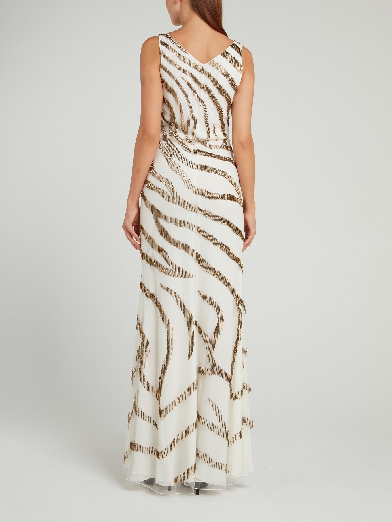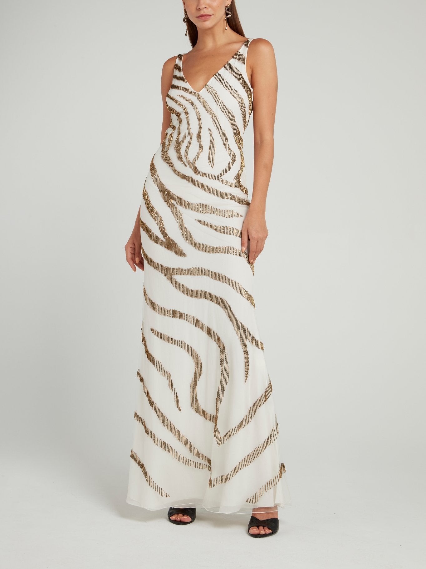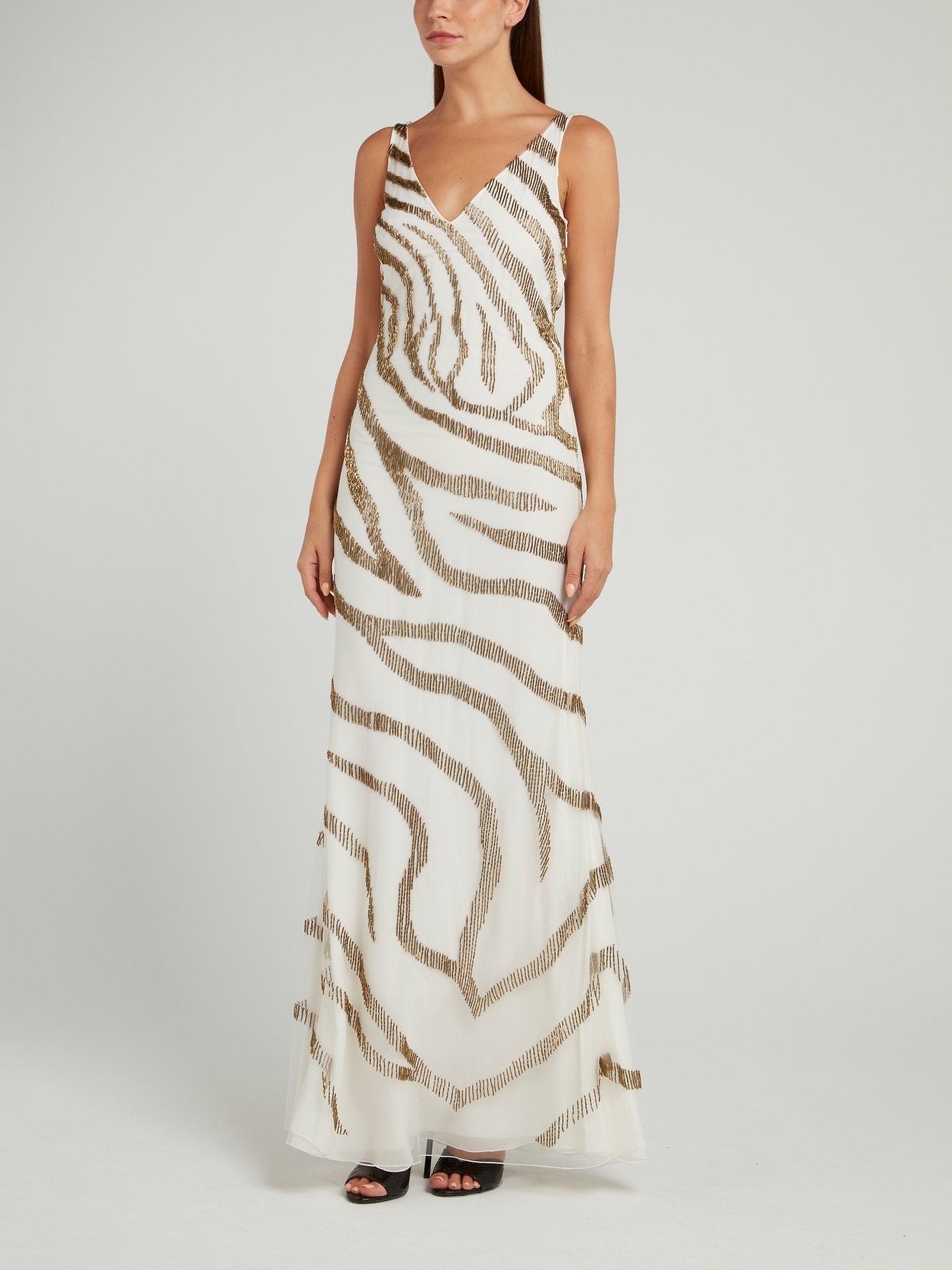 Платье-макси с вышивкой бисером под зебру