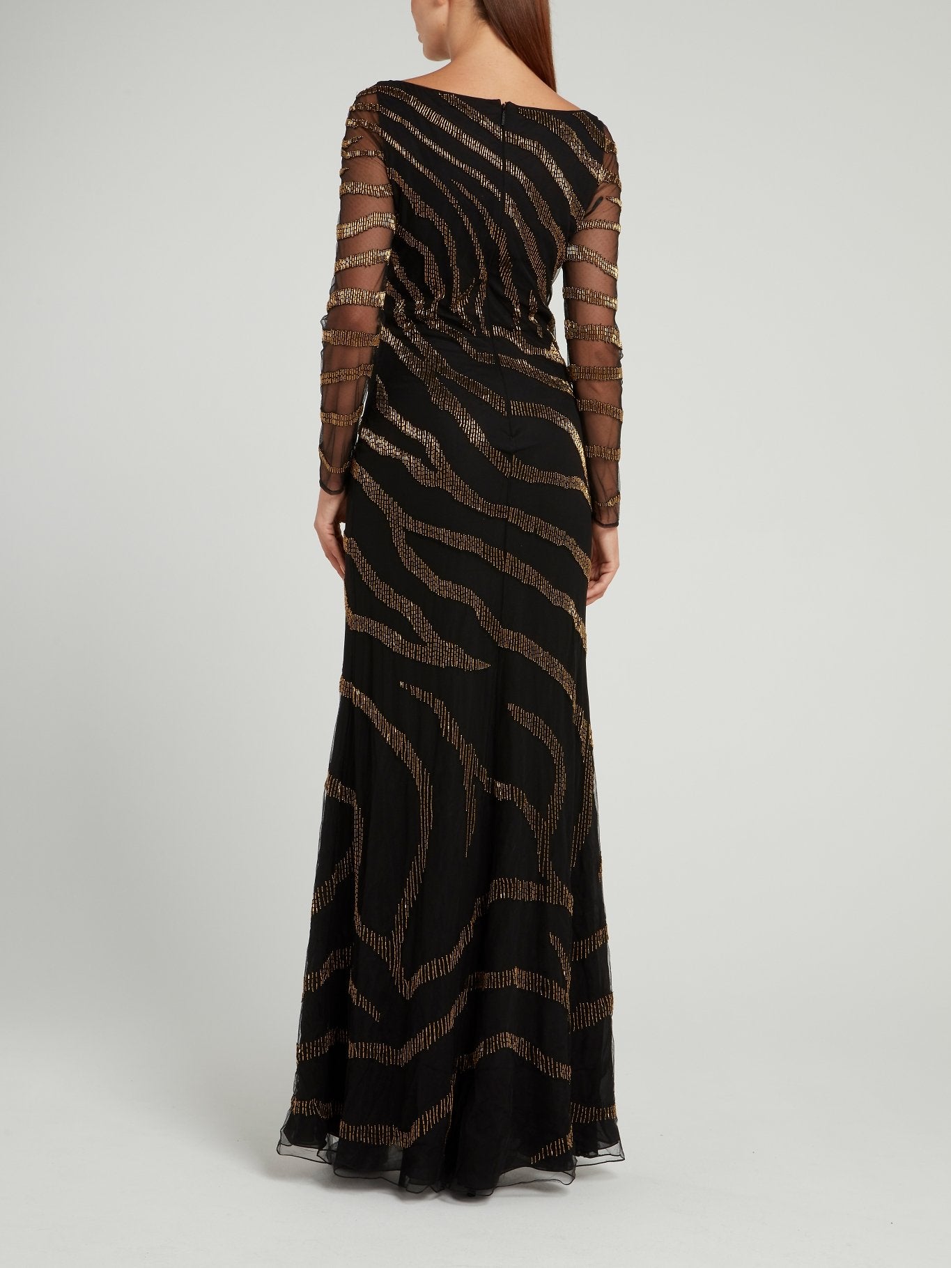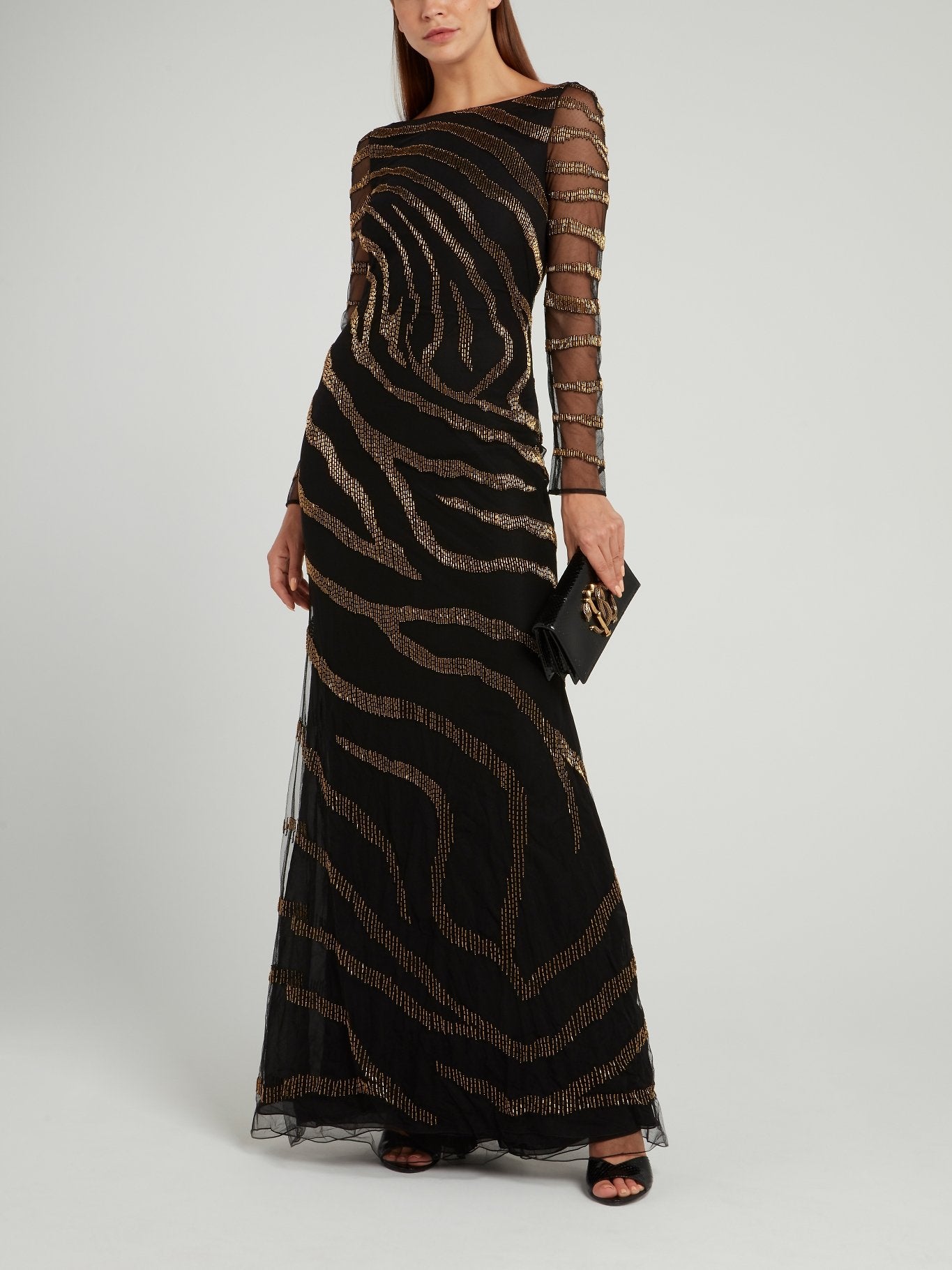 Черное платье-макси с V-образным вырезом и вышивкой бисером