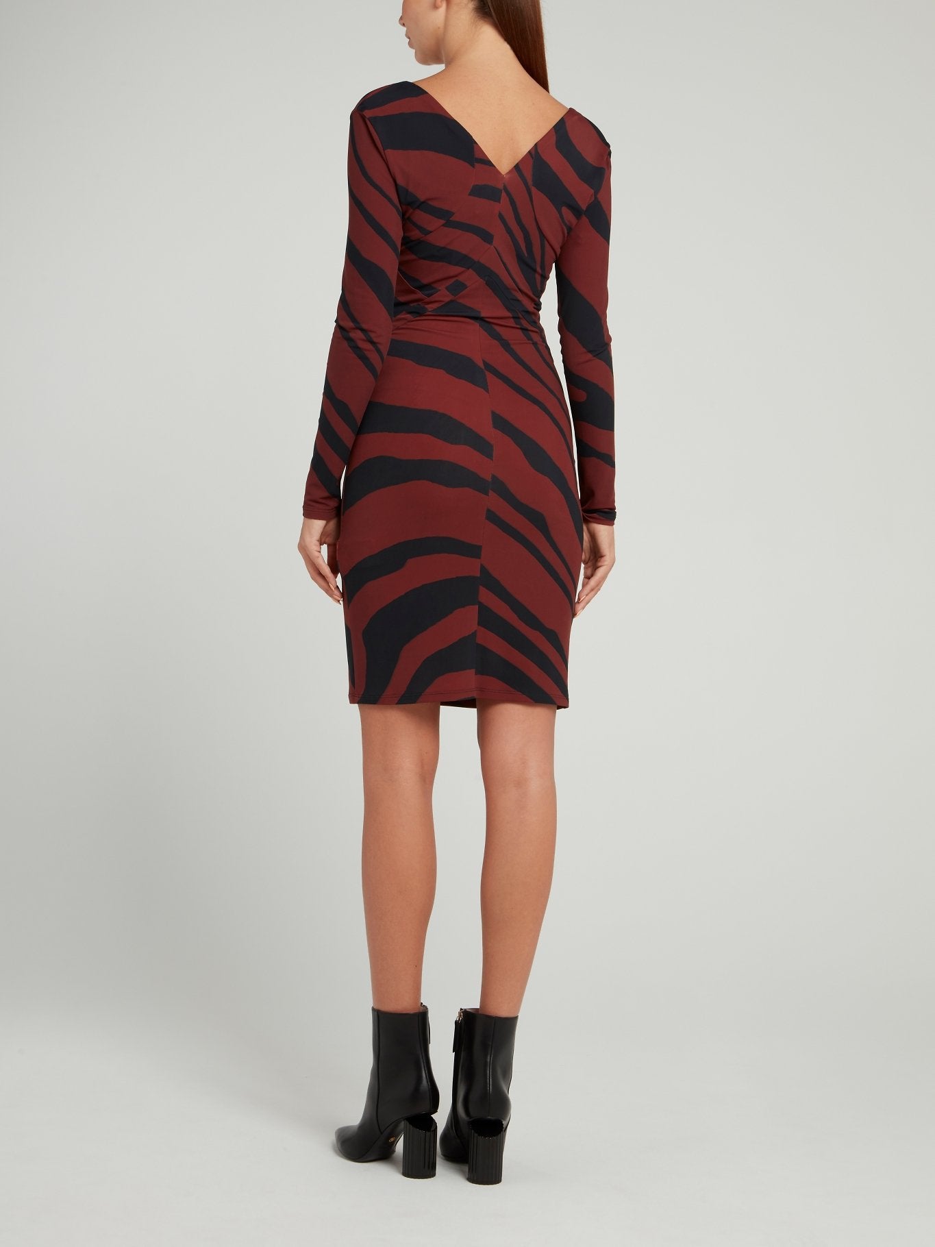 Платье-мини с V-образным вырезом и анималистическим принтом