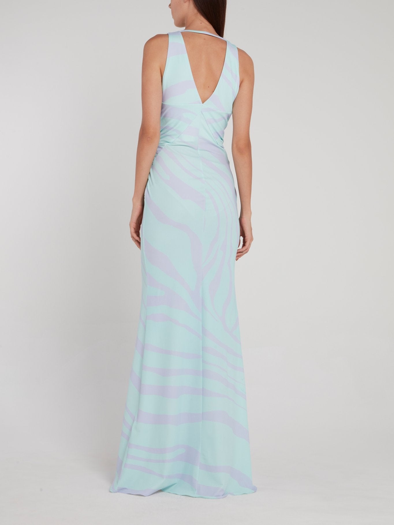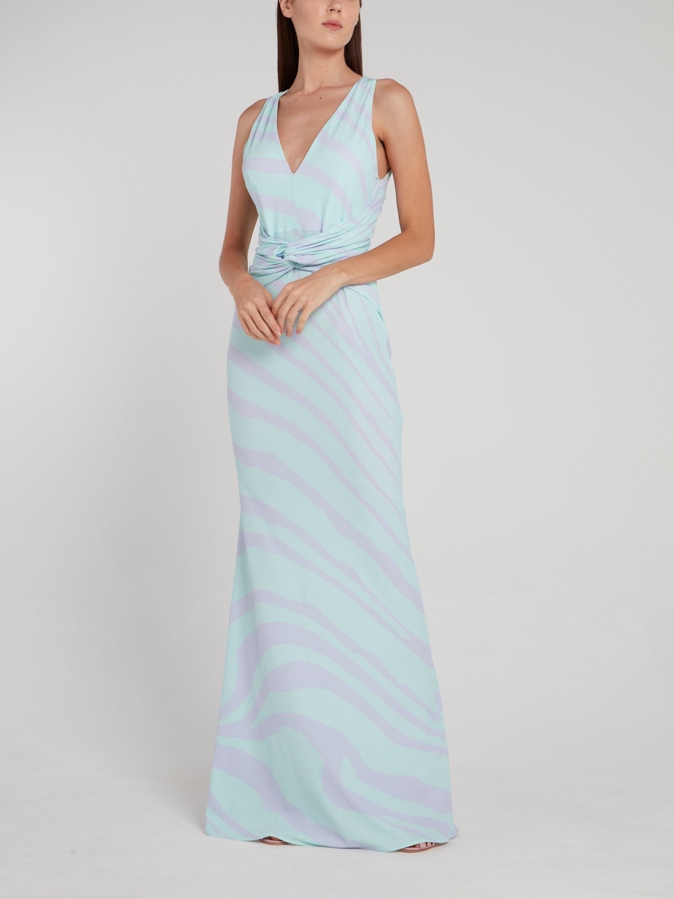 Голубое платье с V-образным вырезом и анималистическим принтом
