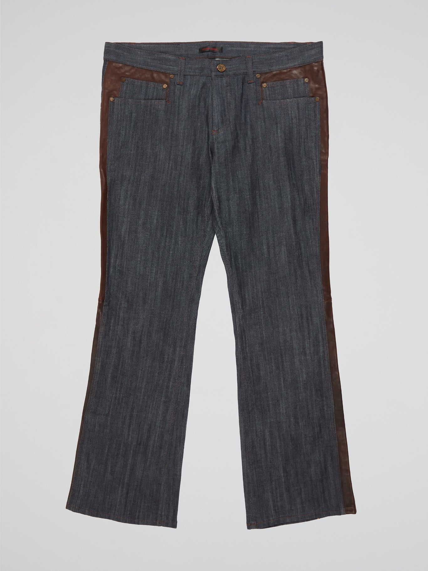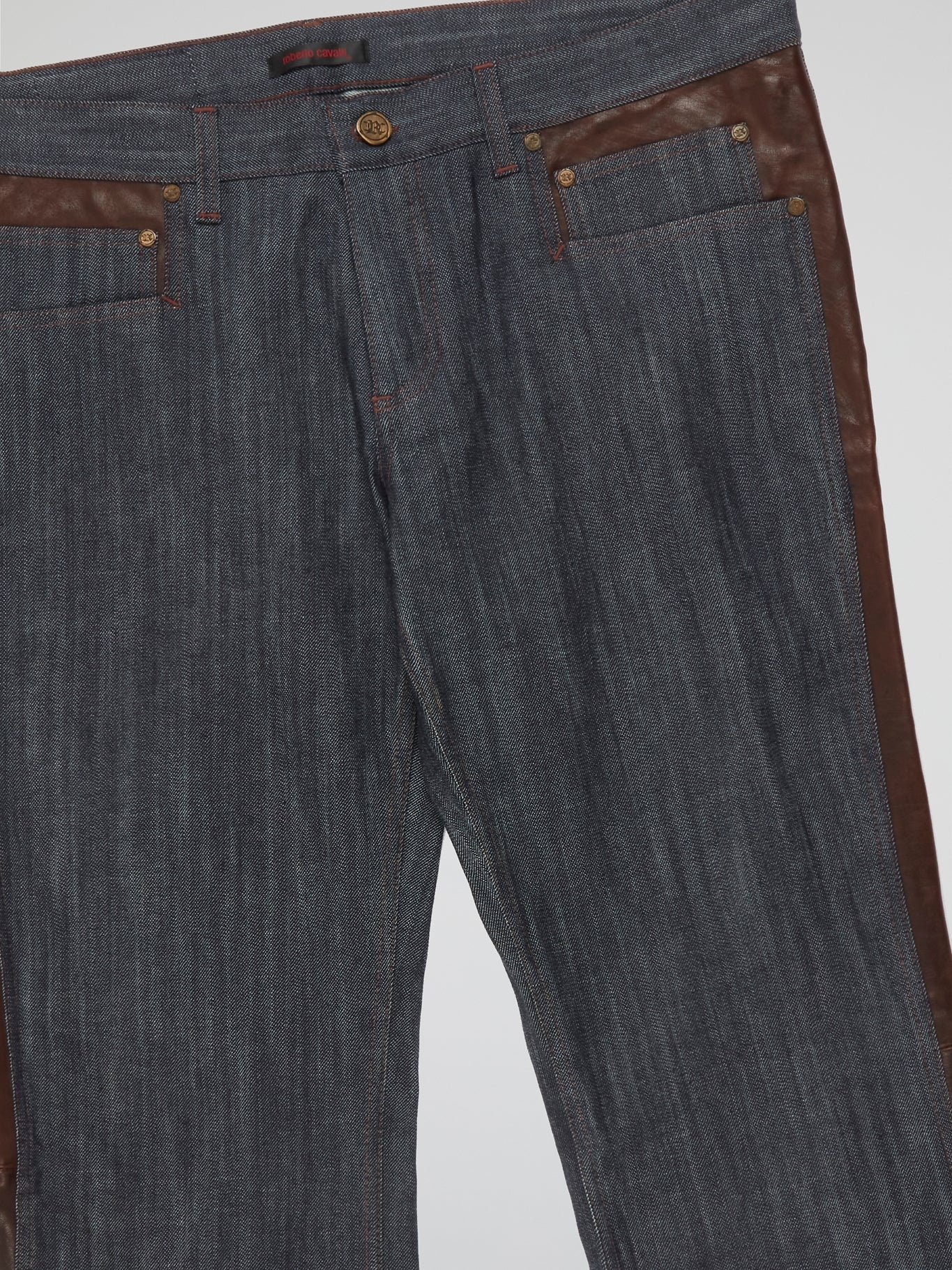 Introducing the Leather Panel Denim Jeans by Roberto Cavalli, the perfect fusion of edgy sophistication and rock 'n' roll rebellion! Crafted with precision, these jeans feature intricate leather panels that elegantly elevate your denim game. Unleash your inner fashion icon as you strut the streets, exuding an irresistible aura of urban mystique in these modern masterpieces.