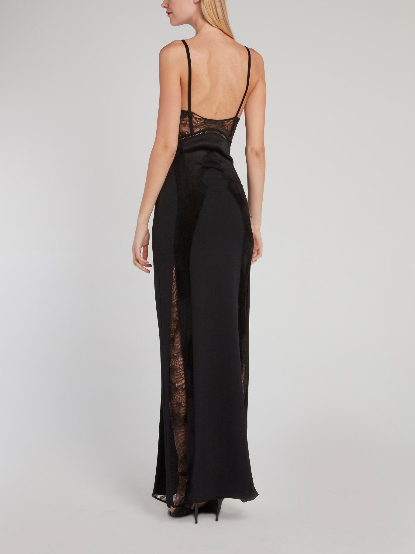 Черное платье-макси с кружевными вставками