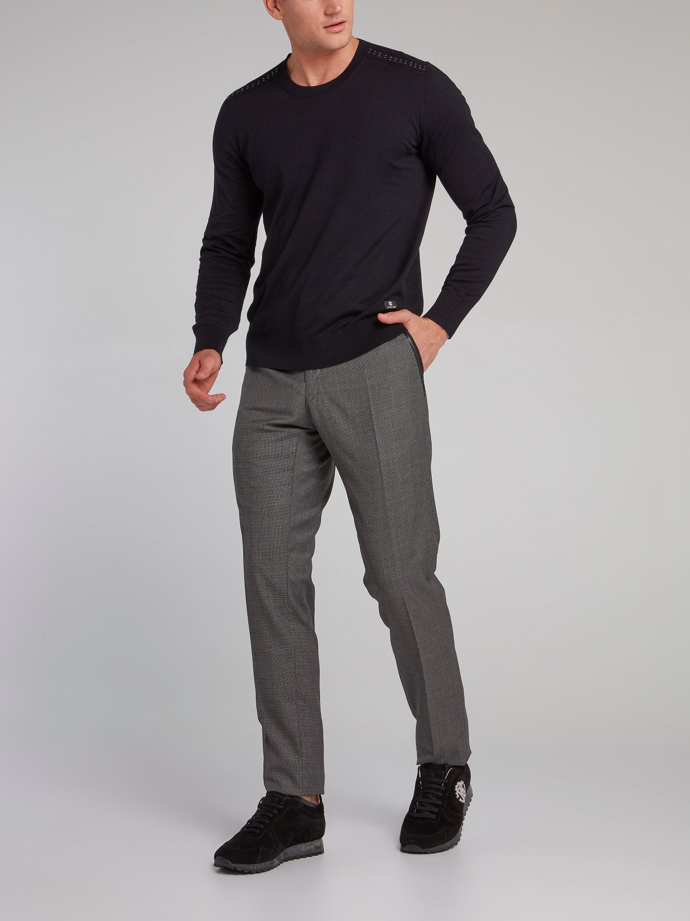 Add a touch of edgy sophistication to your wardrobe with the Navy Studded Shoulder Crewneck Pullover by Roberto Cavalli. Crafted with premium materials, this pullover features a timeless crew neckline and luxurious studded accents on the shoulders. Perfect for any occasion, this statement sweater will quickly become a staple in your closet.
