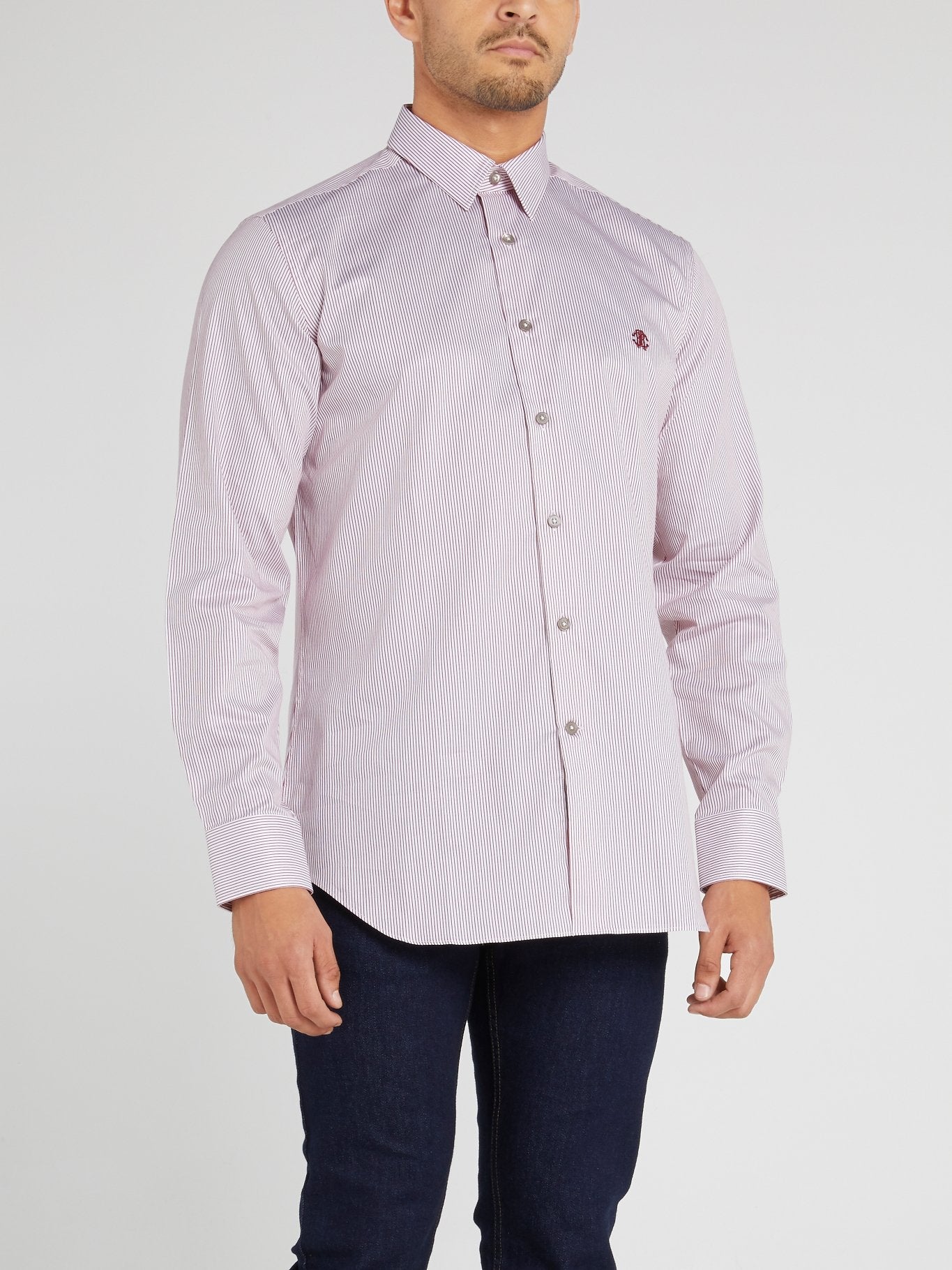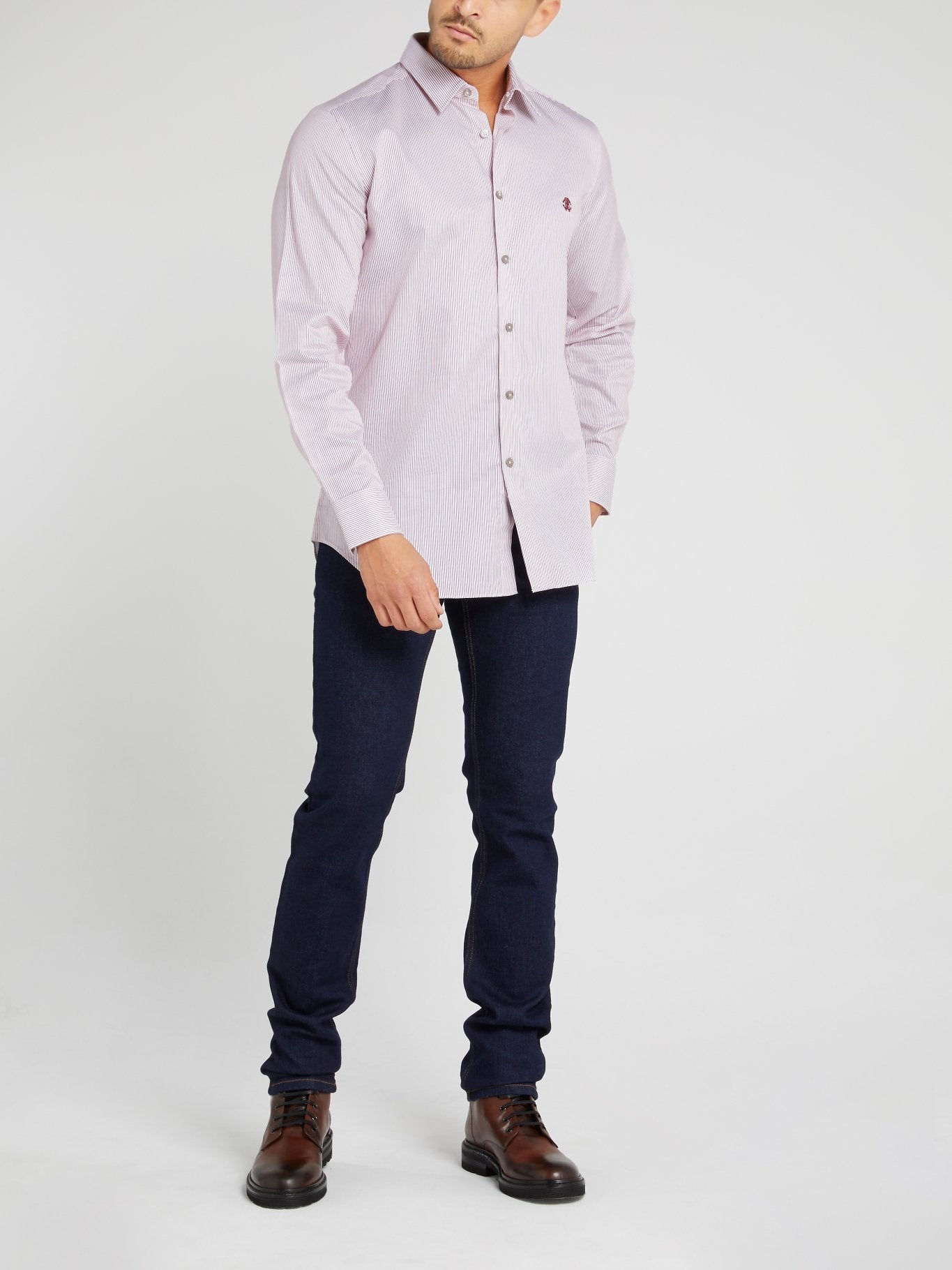 Фиолетовая рубашка с длинными рукавами в тонкую полоску