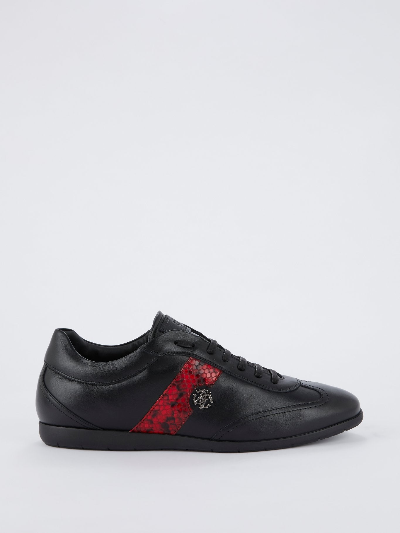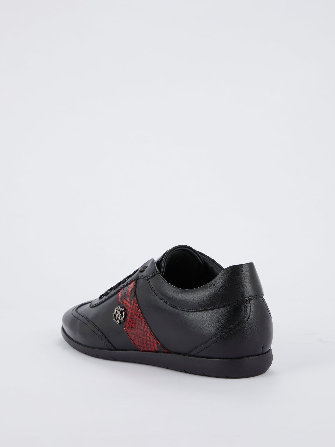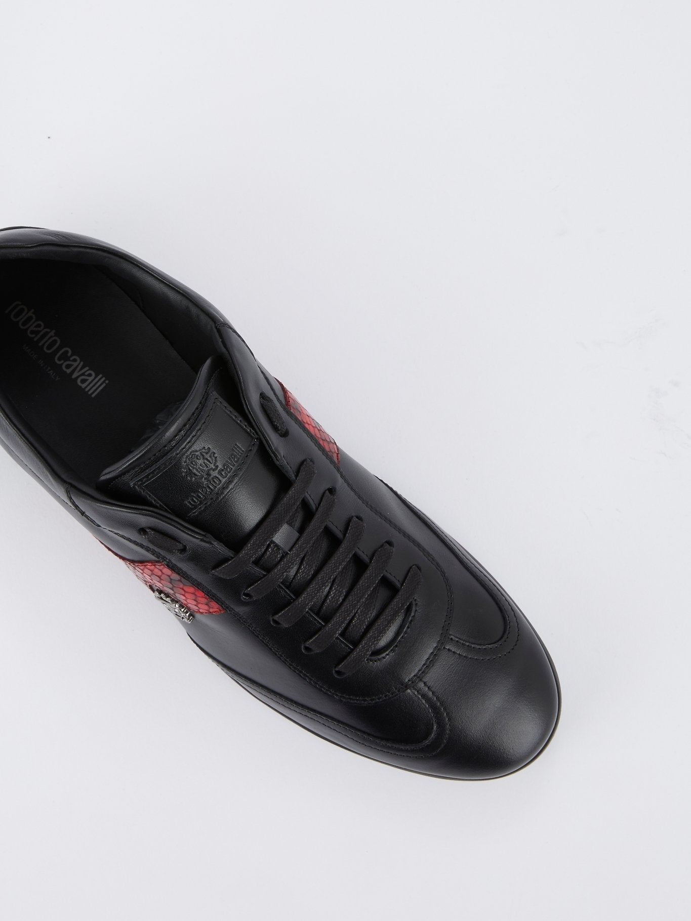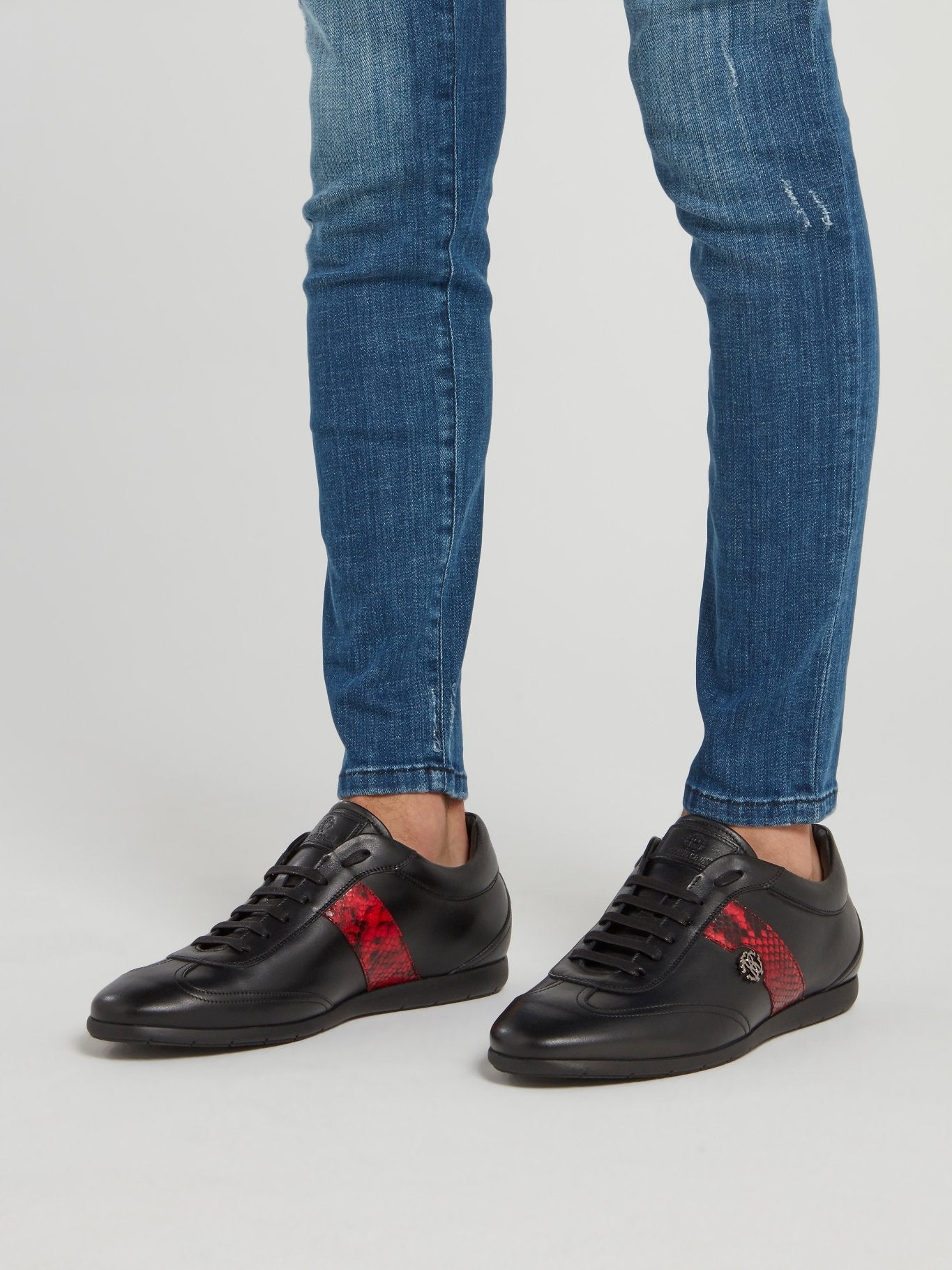 Черные кожаные кроссовки с красной вставкой с эффектом змеиной кожи