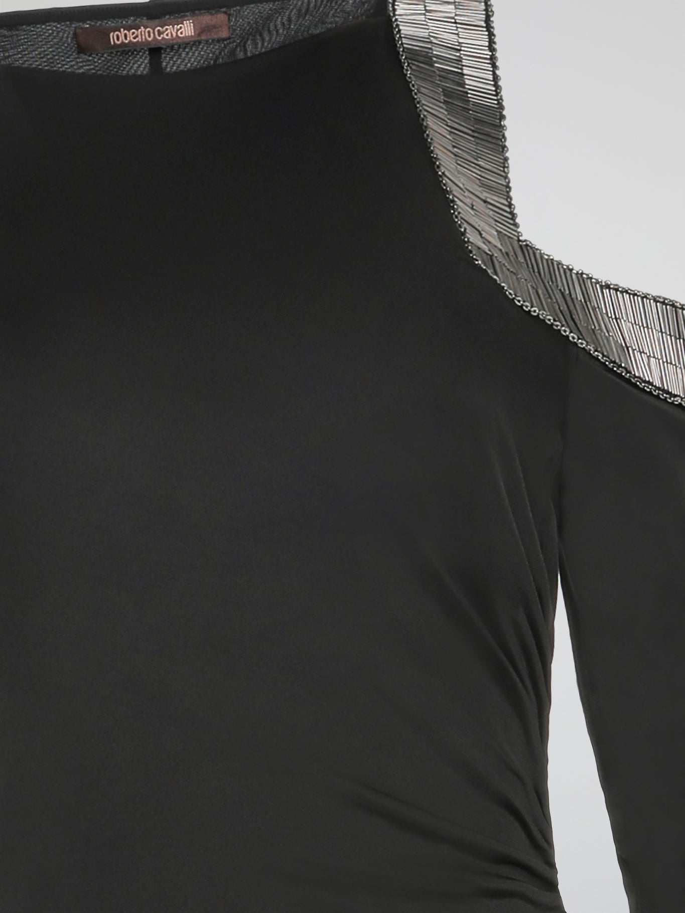 Introducing the epitome of elegance and allure - the Black Cold Shoulder Dress by Roberto Cavalli. This stunning ensemble embraces your feminine curves with a tantalizing glimpse of shoulder, exuding confidence and effortlessly commanding attention. Its sleek black silhouette, meticulously crafted with the finest materials, makes this dress not only a desirable fashion statement, but a timeless masterpiece that will leave a lasting impression wherever you go.