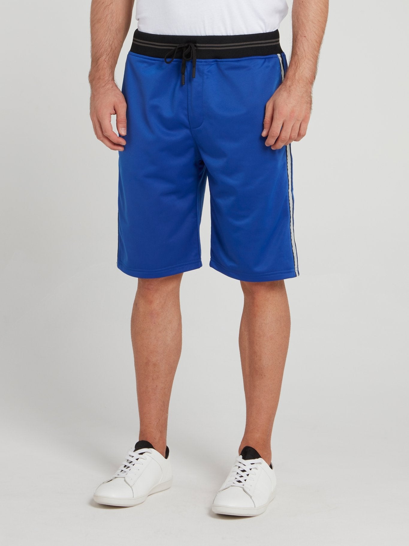 Синие шорты с поясом в полоску
