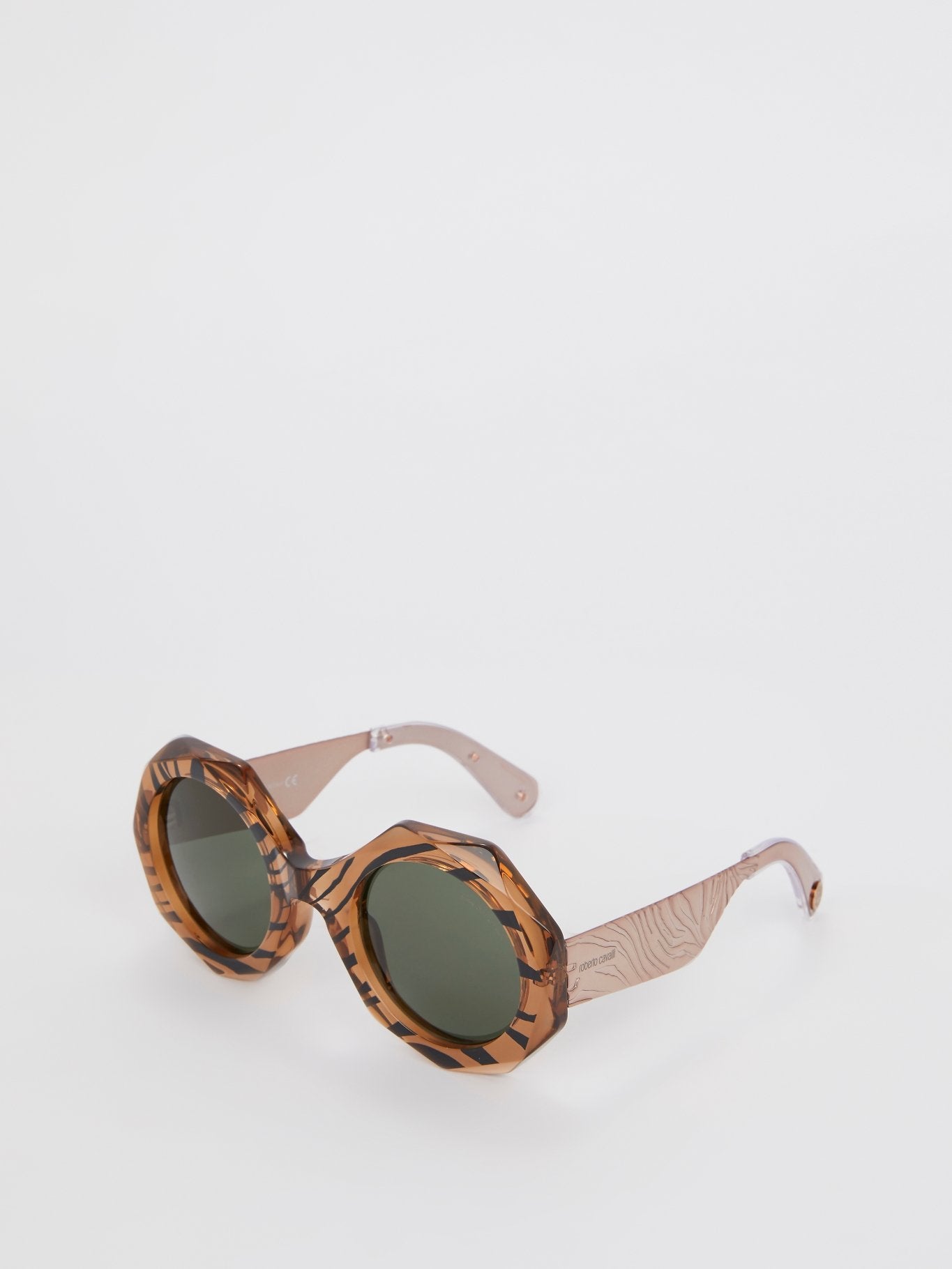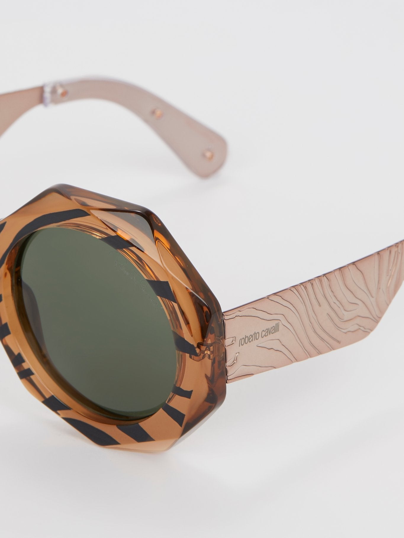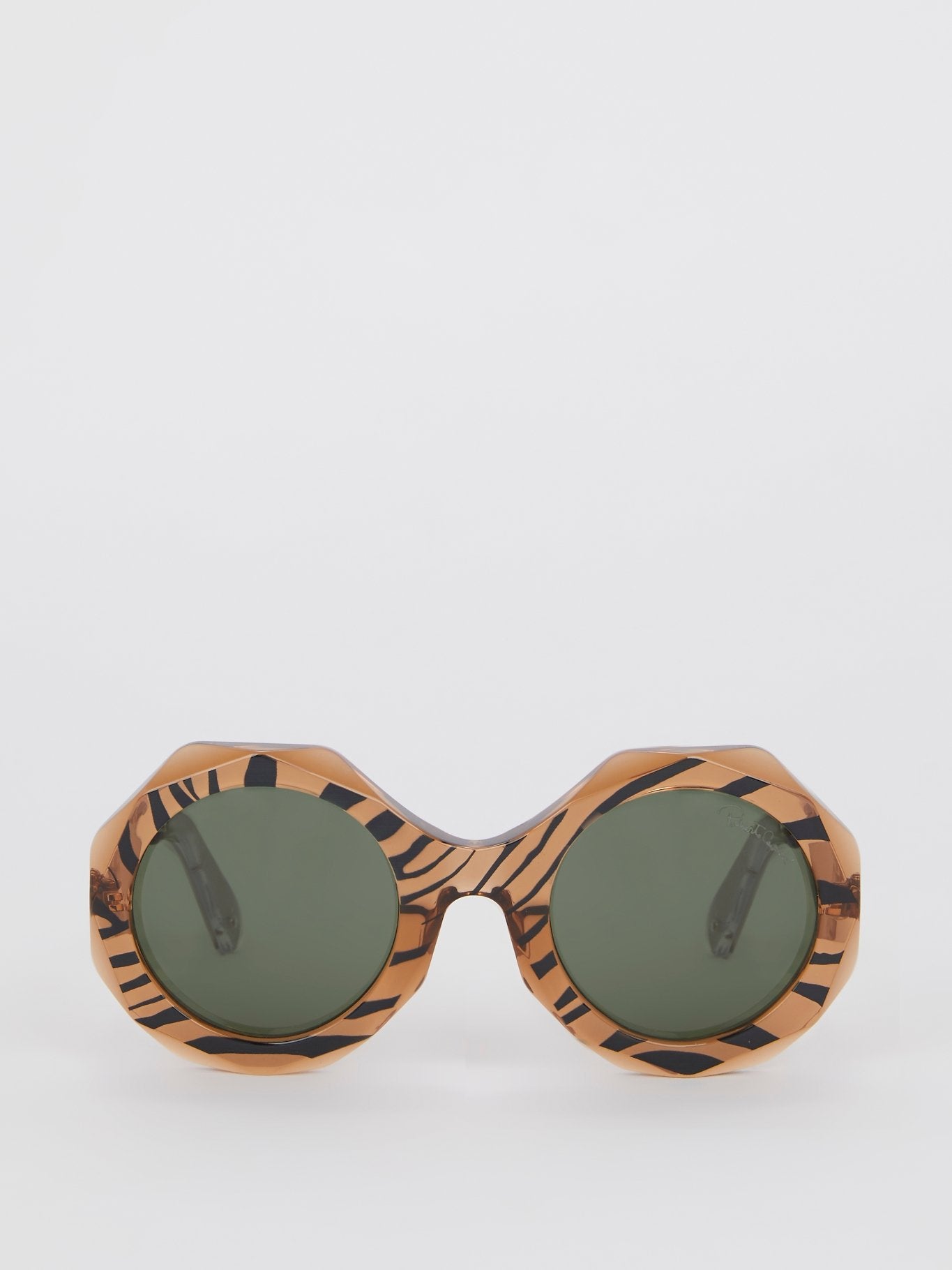 Солнцезащитные очки в геометрической оправе с тигровым принтом