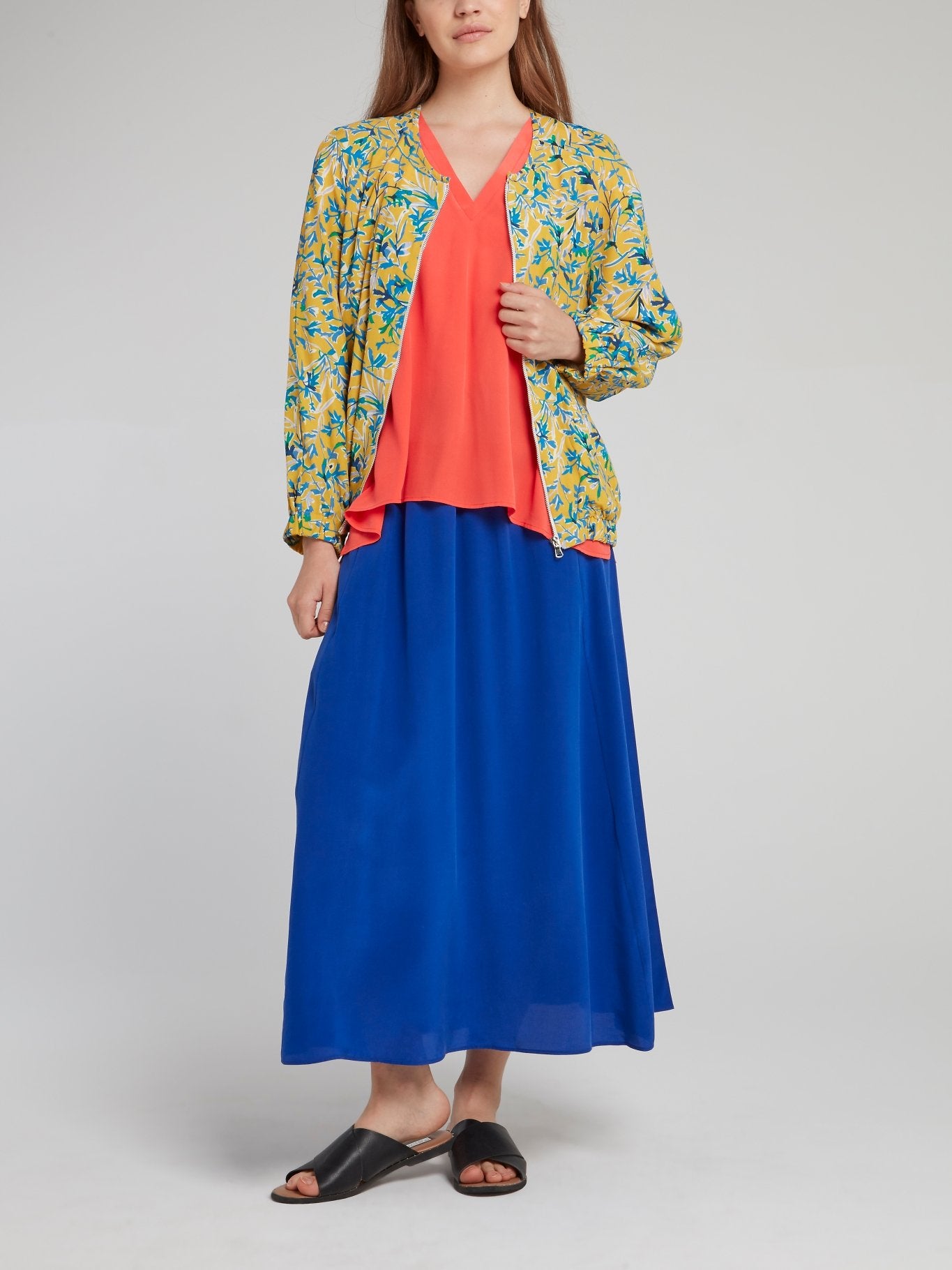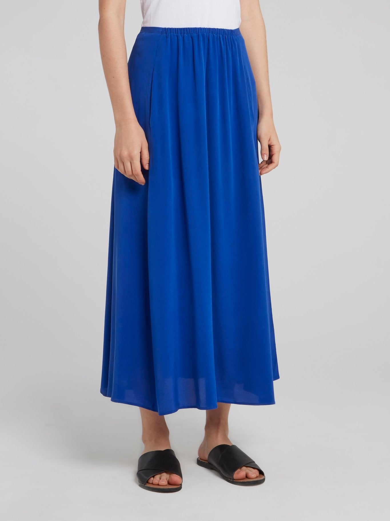 Синяя присборенная юбка-миди