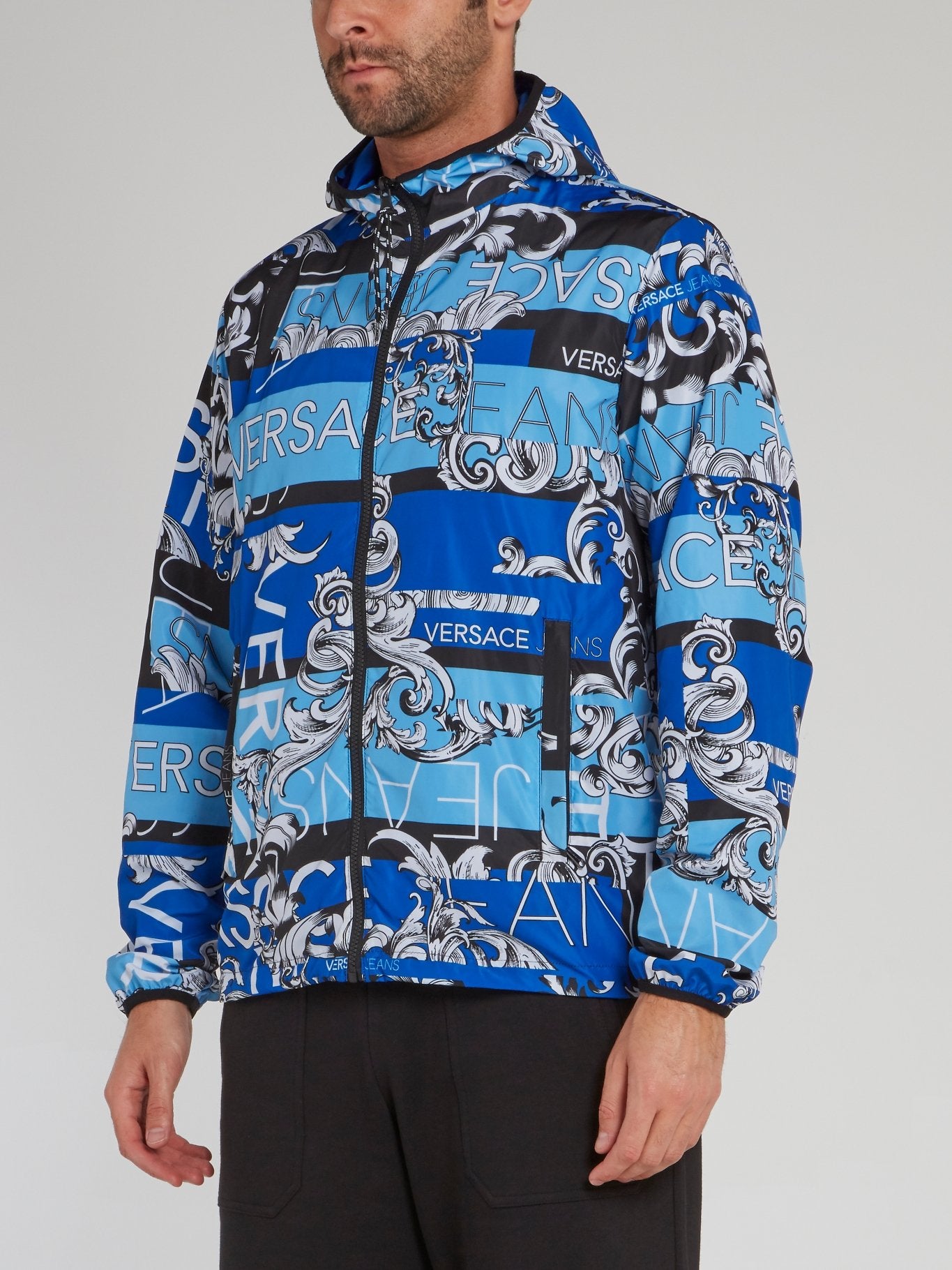 Синяя двусторонняя куртка с принтом Bernini