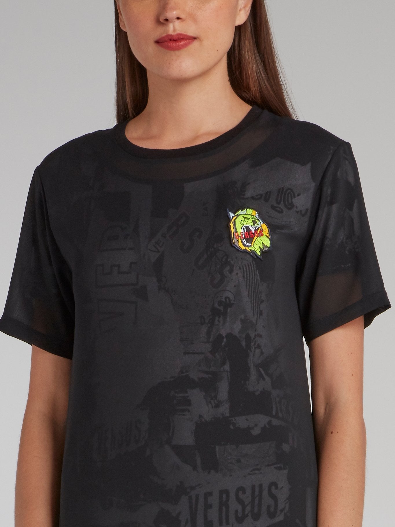 Stand out in style with the Black Appliqued Overlay Jersey Dress from Versus Versace. Crafted from soft, figure-hugging jersey fabric, this alluring dress features dramatic overlays adorned with intricate applique details. With its blend of striking design and luxurious textures, it's the perfect statement piece for any special occasion.