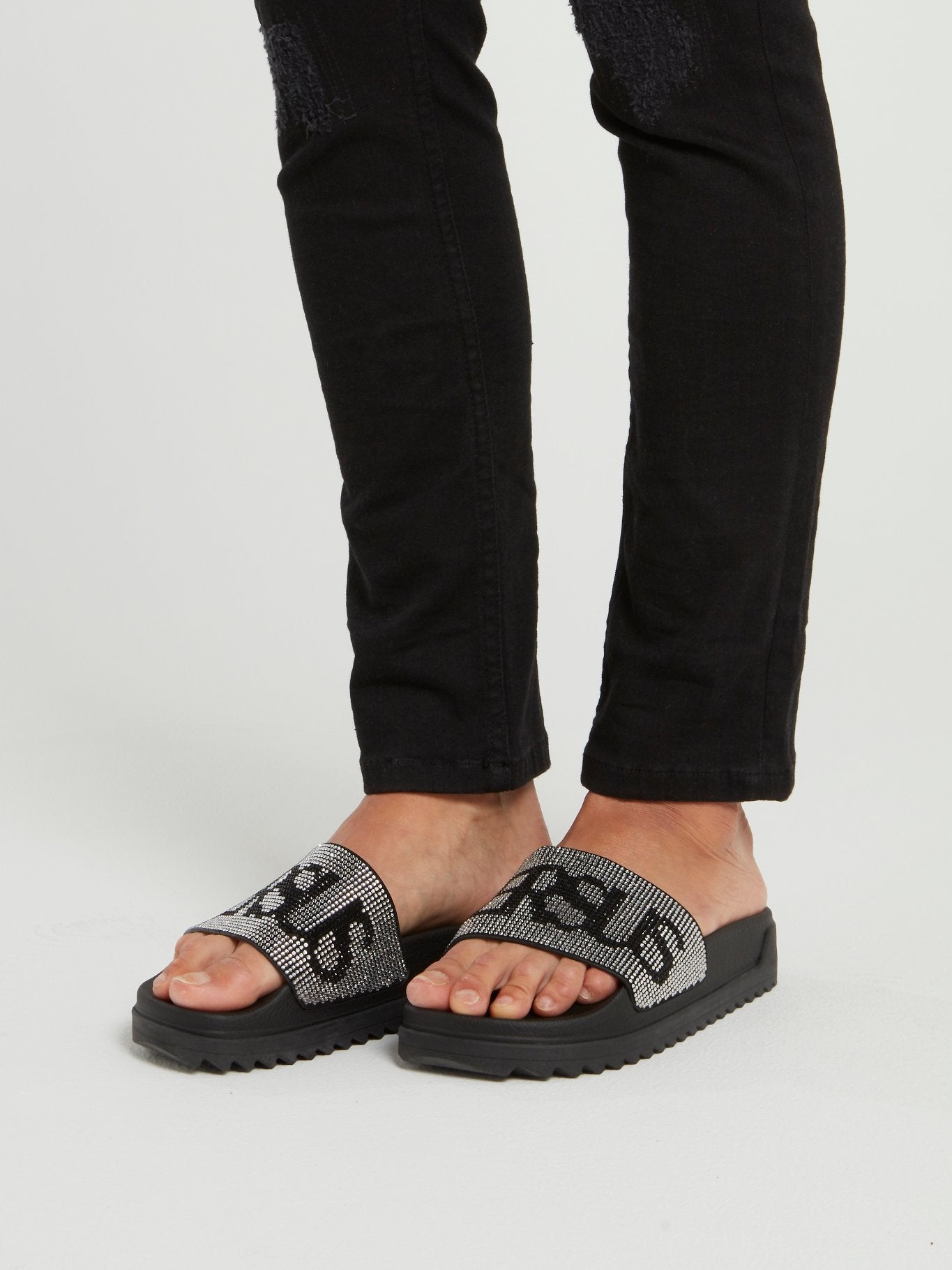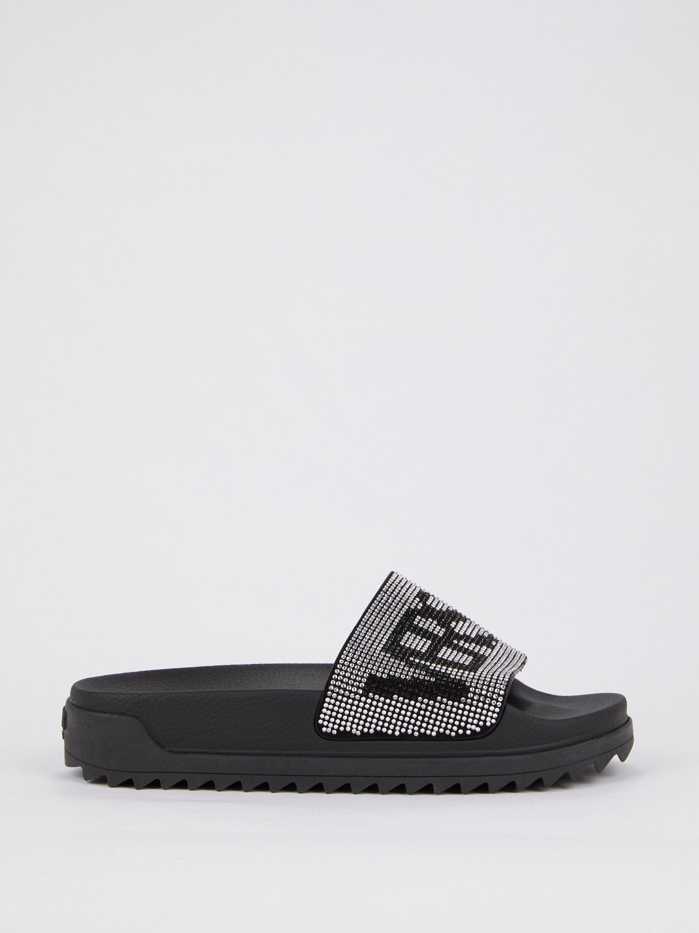 Кожаные шлепанцы с логотипом и стразами Ciabattina